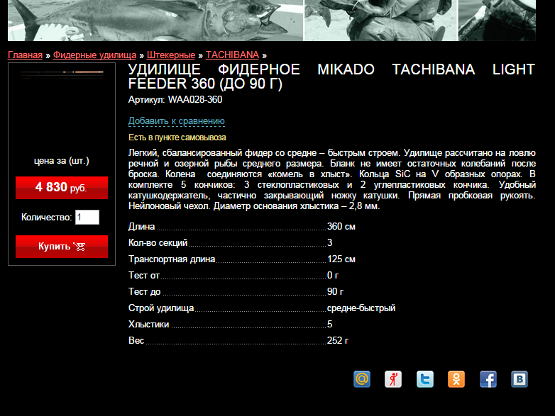 >>715 Подержал я в руках её и ультравиолет. Выбрал последний, хотя тачибана пришла на смену ей. Продавец сказал что выбирать надо какая в руке лучше лежит. Ультравиолет - легенда на рынке с хуй знает каких годов. Продавец Mikado центр рассказал , что её снимали с производства , но по многочисленным просьбам рыбаков вернули на конвеер. Вот такие дела. ПО хар-ам и та та хороша.