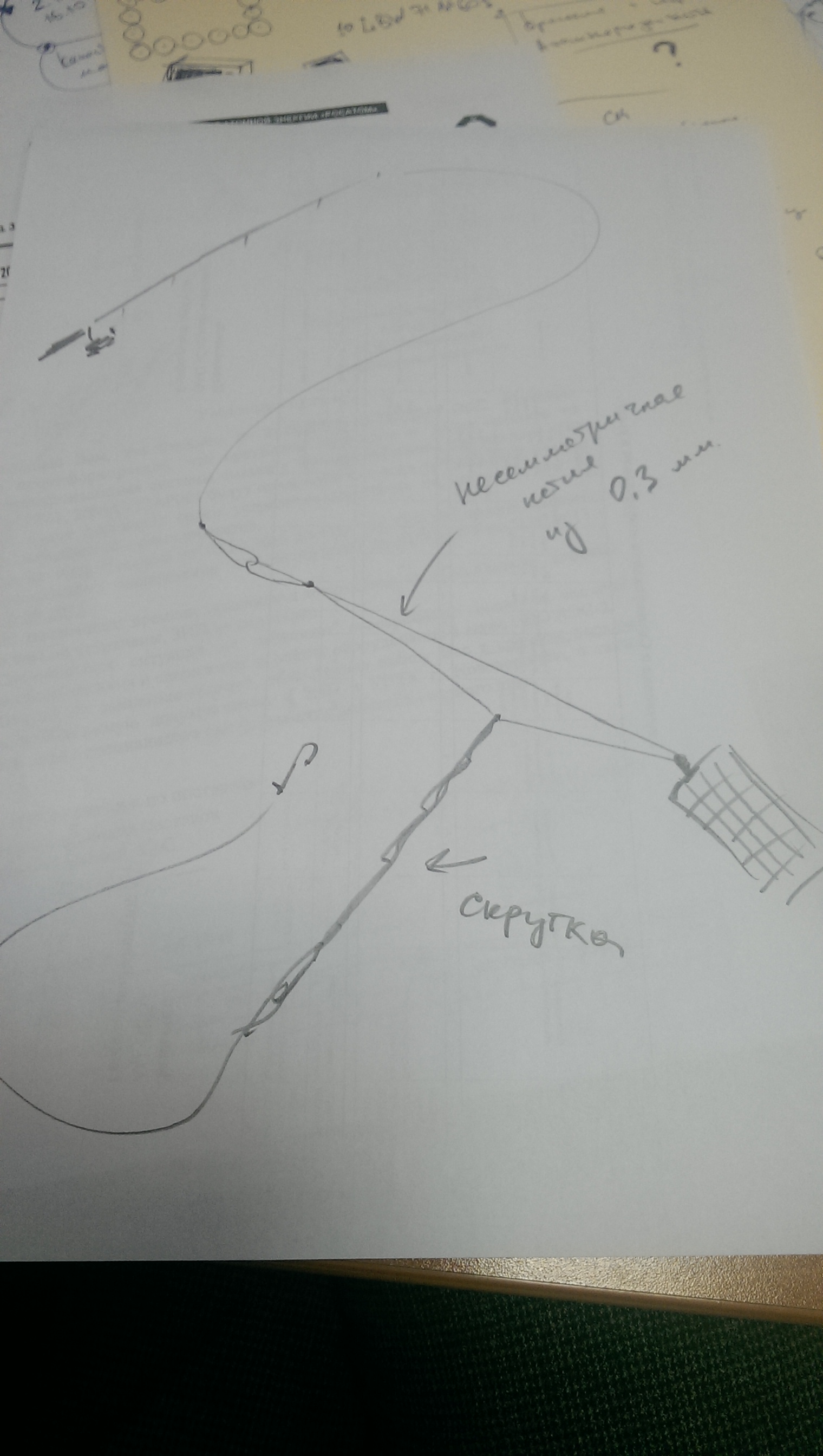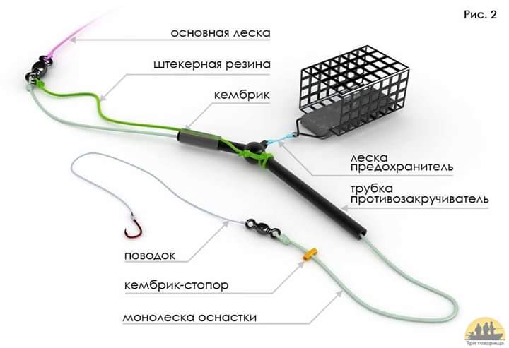 >>6052 Сам завтра буду пробовать. Не могу определиться со сквозным грузом: пропустить основную леску через трубочку противозакручиватель или просто к вертлюжку кормушку повесить. Вот вариант, какой я встречал.