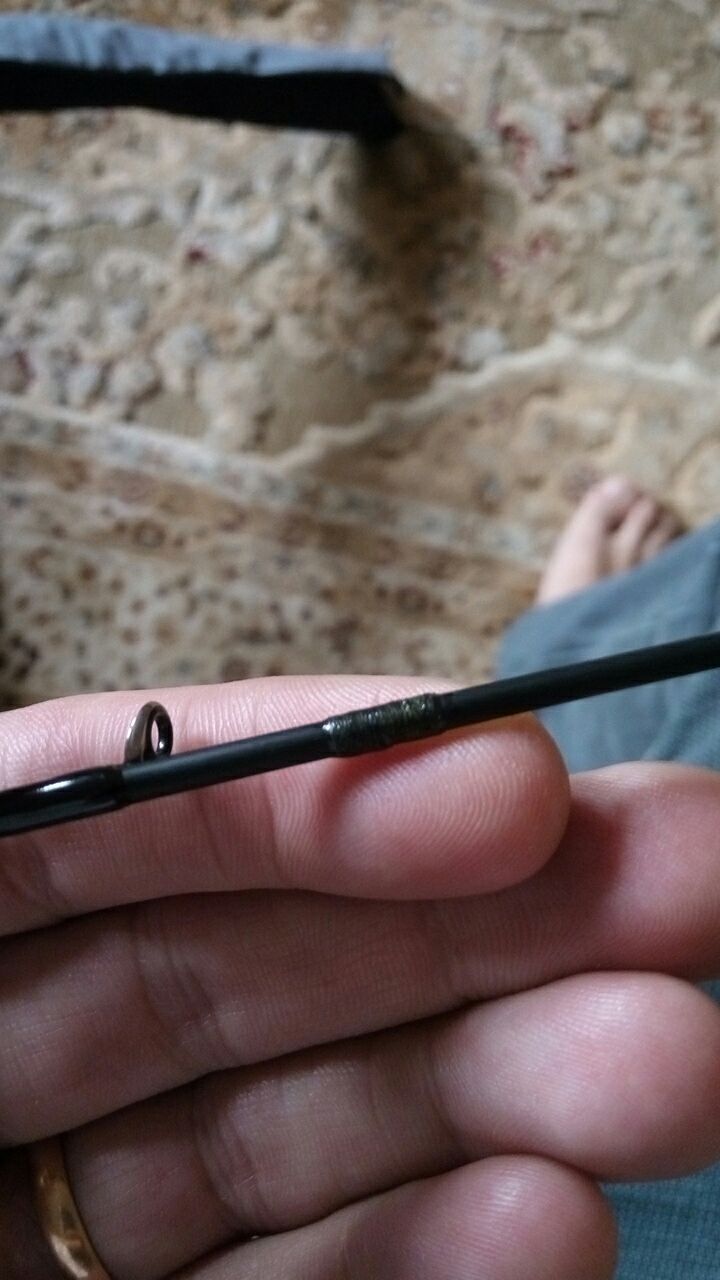 Вот такой вот бандаж замутил от греха подальше. Походу крючком воблера задир сделал на бланке.ну как обычно я криворукий рукожоп Обыкновенный шнур намотал по правилам родбилдинга безо всяких узелков (ютюб показал) и залил эпокидным клеем тонким слоем.