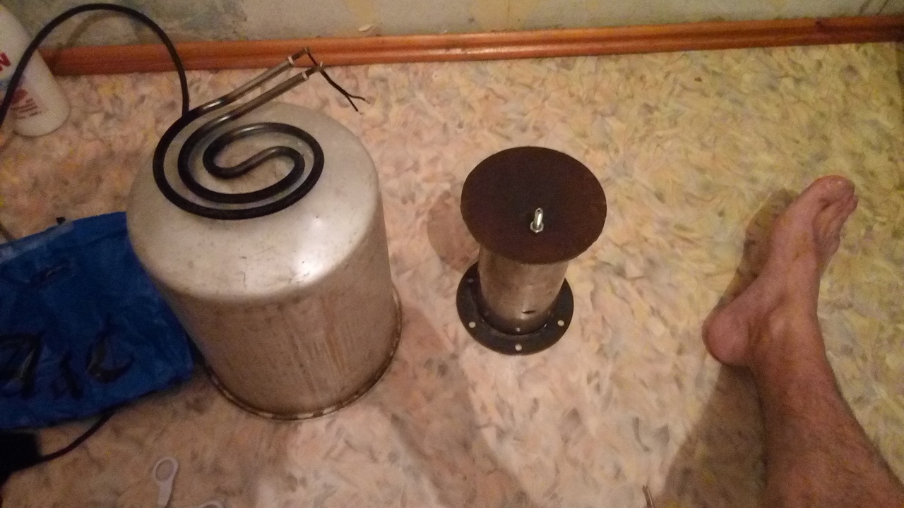 Это будущий тигель для расплавки свинца. Он электрический. Мощность ТЭНа 1кВт. Испытываю катастрофическую нехватку инструмента для работы, от того некоторые моменты выходят уродливо. Как например отверстие для выхода контактов спирали. Осталось сделать кронштейн для механизма запирания литника и найти минвату для теплоизоляции. Запирающий отверстие стальной пруток я по традиции спиздил.