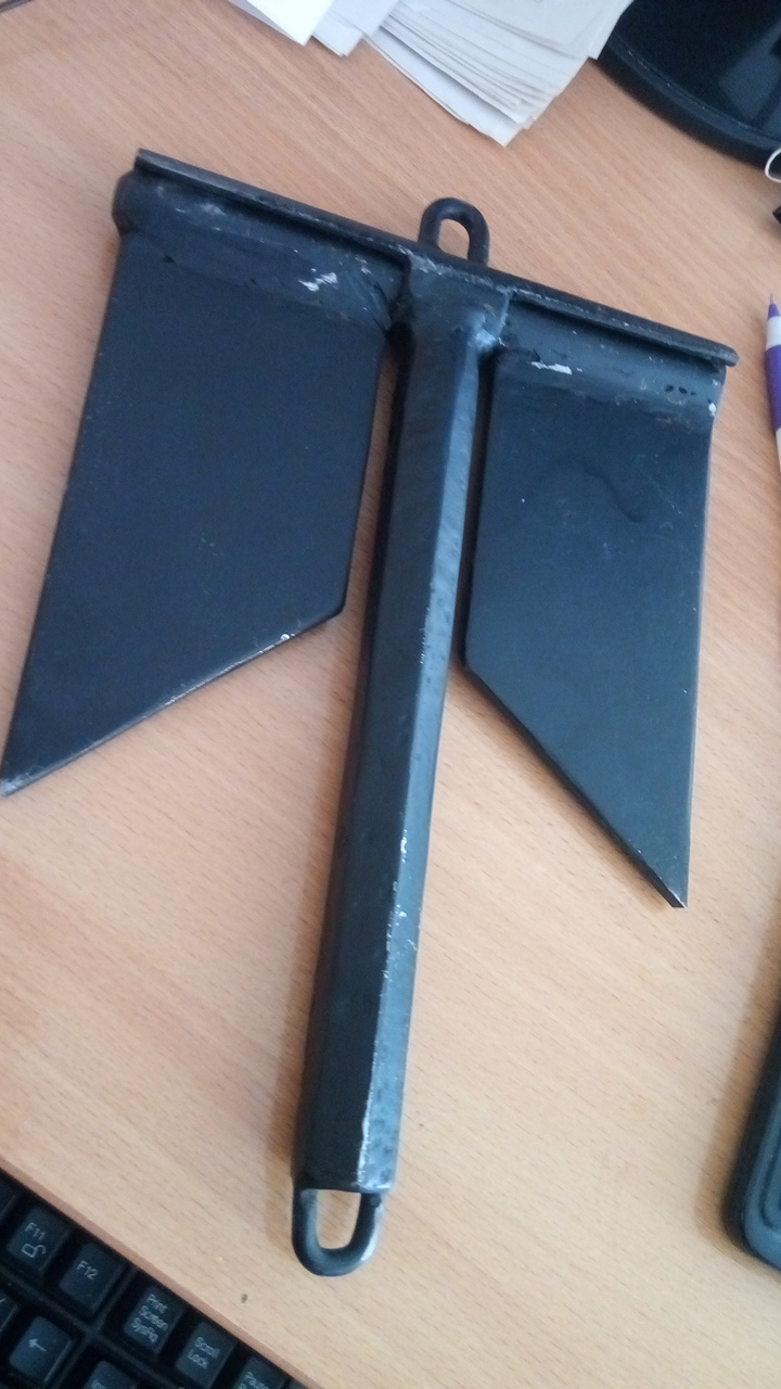 У меня была стальная чушка с залитым внутрь свинцом. Довольно тяжелая. Около 8 кг. Отлично работает в качестве якоря. Но поднимать эту тяжесть каждый раз не так уж и легко!