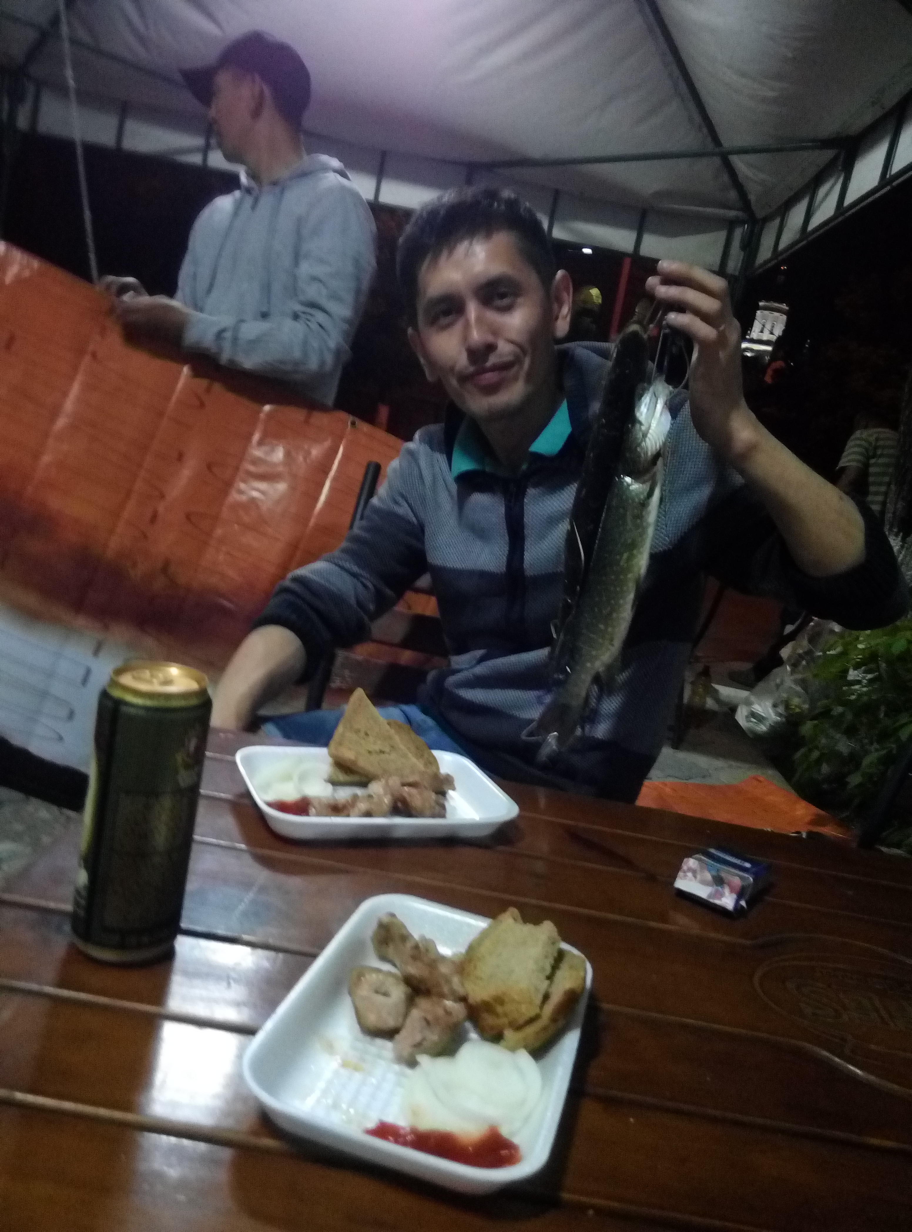 И вот я приехал после суток, проведенных на реке. По Ишиму конкретно так соснули. Даже с эхолотом. Лето пришло слишком запоздало в этом году. Все кто ловил щуку или судака ловил их на старицах с более теплой водой. А в основном русле они ещё пузаты от икры либо "болеют". А может это и не так. Напарник Саня был опытный и до жути щепетильный в плане обустройства походного быта. Легкий перекус консервами это не для него. Если газ, то баллон не обыкновенный железный, а прочный и легкий, пластиковый из Норвегии. Каждая деталь на своем месте. Всё есть. От кондома до патрона. И всё компактно, практично, умно.