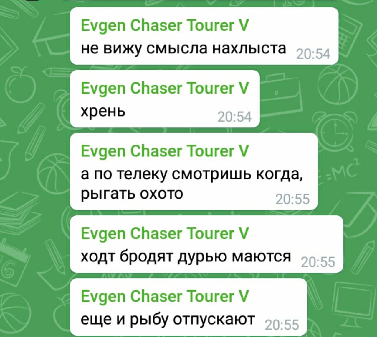 Так. Цвайхандер-кун репортинг ин. Рыбалку можно считать успешнее, чем вчера, но не на много. Сначала приехали на место, на котором приезжают бывалые рыбаки рыбачить. Забросили пару раз и к нам прибежали ПОЛОУМНЫЕ ЛОЛЬКИ, КОТОРЫЕ РЕШИЛИ ЧТО САМОЕ ВРЕМЯ КУПАТЬСЯ, БЛДЖАД, ГДЕ РЫБАЧАТ. В итоге распугали всю рыбу и час мы просто так просидели. Затем они благополучно съебнули и мы принялись рыбалить. Сколько не забрасывали спиннинг, в итоге одна хуита. Доебался до мужика который рыбачил рядом, он сказал что вроде все норм и надо просто по берегу ходить закидывать в разных местах, меняя наживки по цвету. Пока братан попросил тоже покидать, я закинул удилище в местные кусты и там сразу КЛЮНУЛО. Вытащил этого мудачеллу. По совместному решению решили назвать Карасиком. Но потом я глянул на него, и чот он был печальный как моя жизнь. Плавал на пузе и хватал ртом воздух. Снова посовещавшись, было решено его отпустить ибо ни я, ни корефан, рыбу готовить не умеем, а убивать за зря мудака желания не было. Собственно, на этом мы и поехали домой