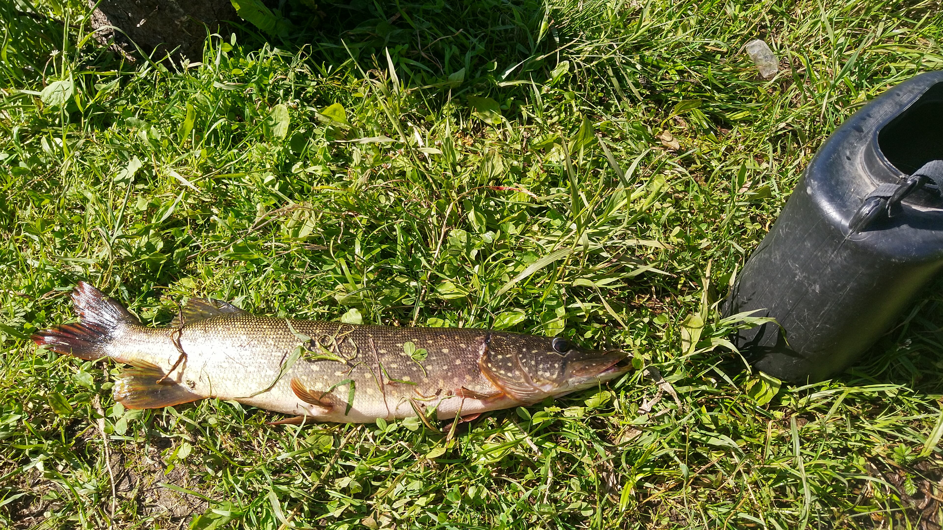 Первого живца цепляю на спиннинг. Для второго достал старую толстую леску и привязал крючок с живцом прямо так. Закидываю, тут же поклевка. Но леска рвется в руках. Я хватаю за нее, но живца срывпают с крючка. Окей. Вчера снова привязал к ней второго живца. Кидаю, тут же поклевка. Я пытаюсь вытащить щуку, но леска рвется уже у поводка. Выкинул ее нахрен. Забавно что больше на живца ничего не клевало.