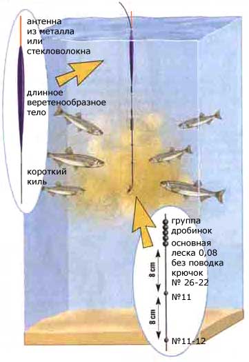 >>1811 Удлиненный поплавок практически всегда является лучшим решением для ловли уклейки, за исключением случаев, когда её действительно очень много. Действительно, в этом случае оснастка опускается на место поступательно, и можно обнаружить любую поклевку на любой глубине погружения оснастки. Для начала лучше всего использовать огрузку из соединенных вместе грузиков, за которыми располагаются на одинаковом расстоянии две маленьких дробинки, но после того, как вы точно выясните на какой глубине стоит уклейка, можно использовать одиночную оливку или крупную дробинку. Использовать поводок нет смысла, так как риск обрыва лески очень мал, а на цельной леске наживка спускается более естественно. На что бы вы ни ловили (на мотыля, на синтетическую пасту Mystic или пинки), используйте длинные крючки, с которых легко снимать добычу. Хитрости: наиболее крупная уклейка ловится рядом с облаком прикормки.