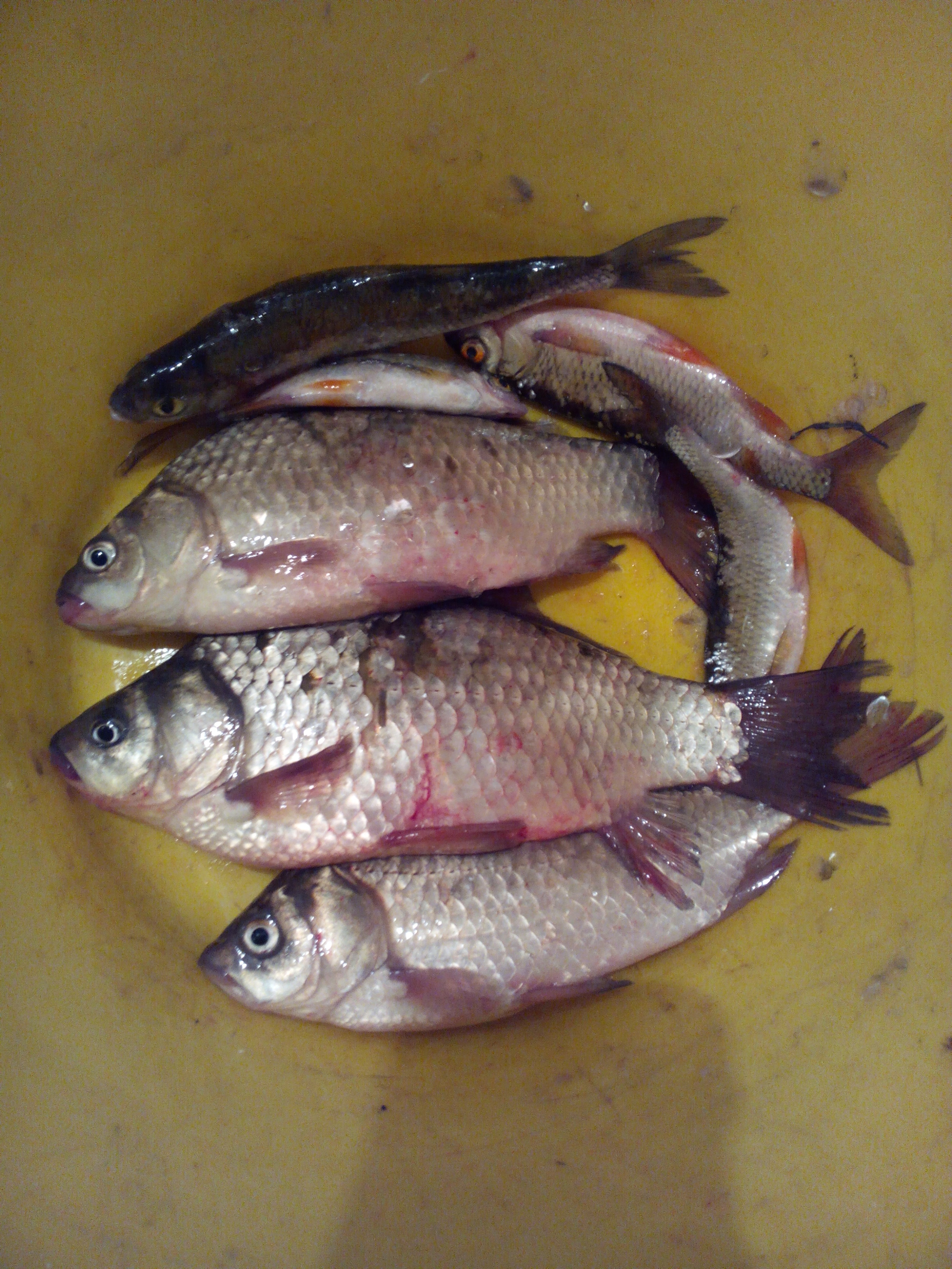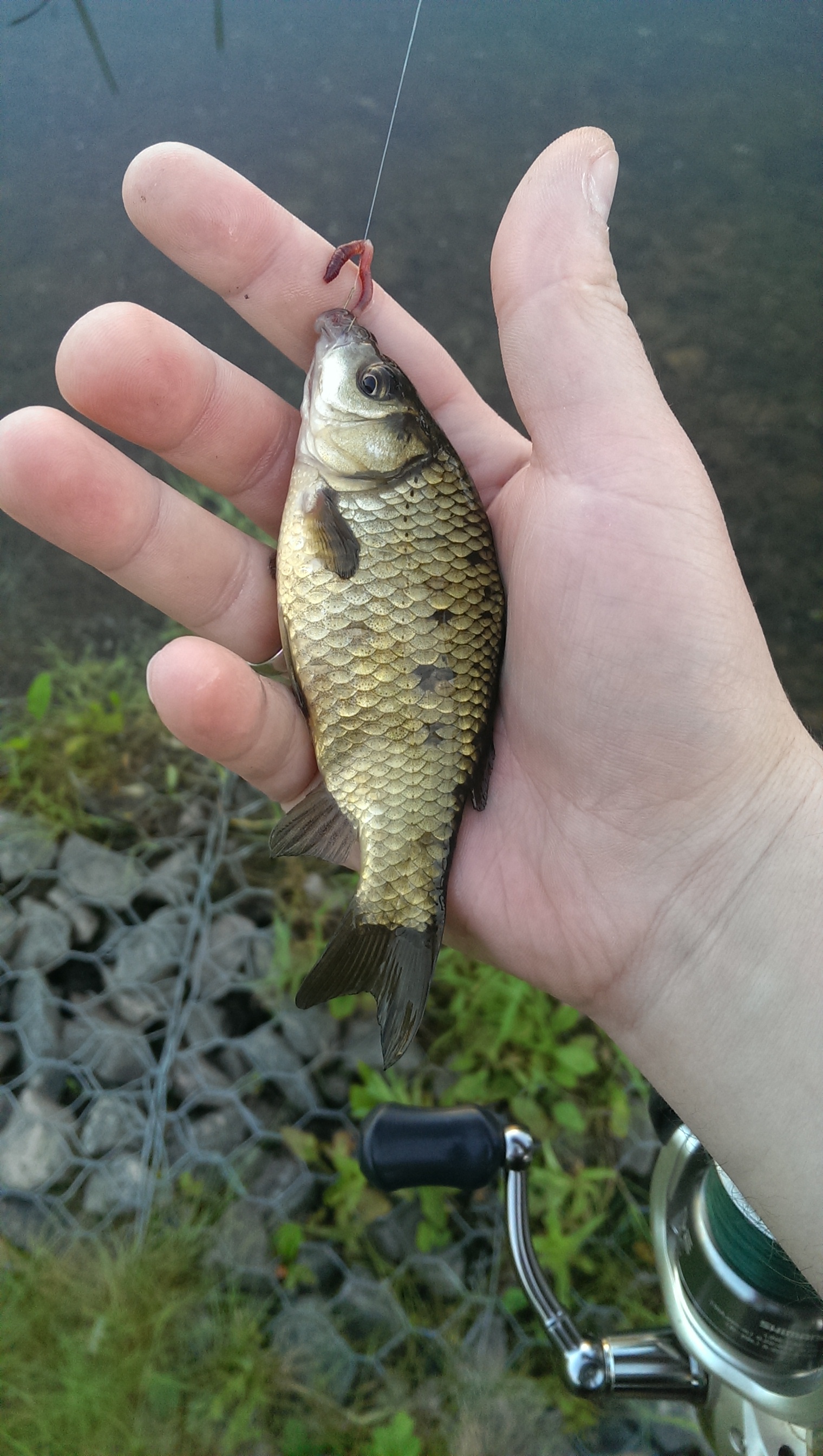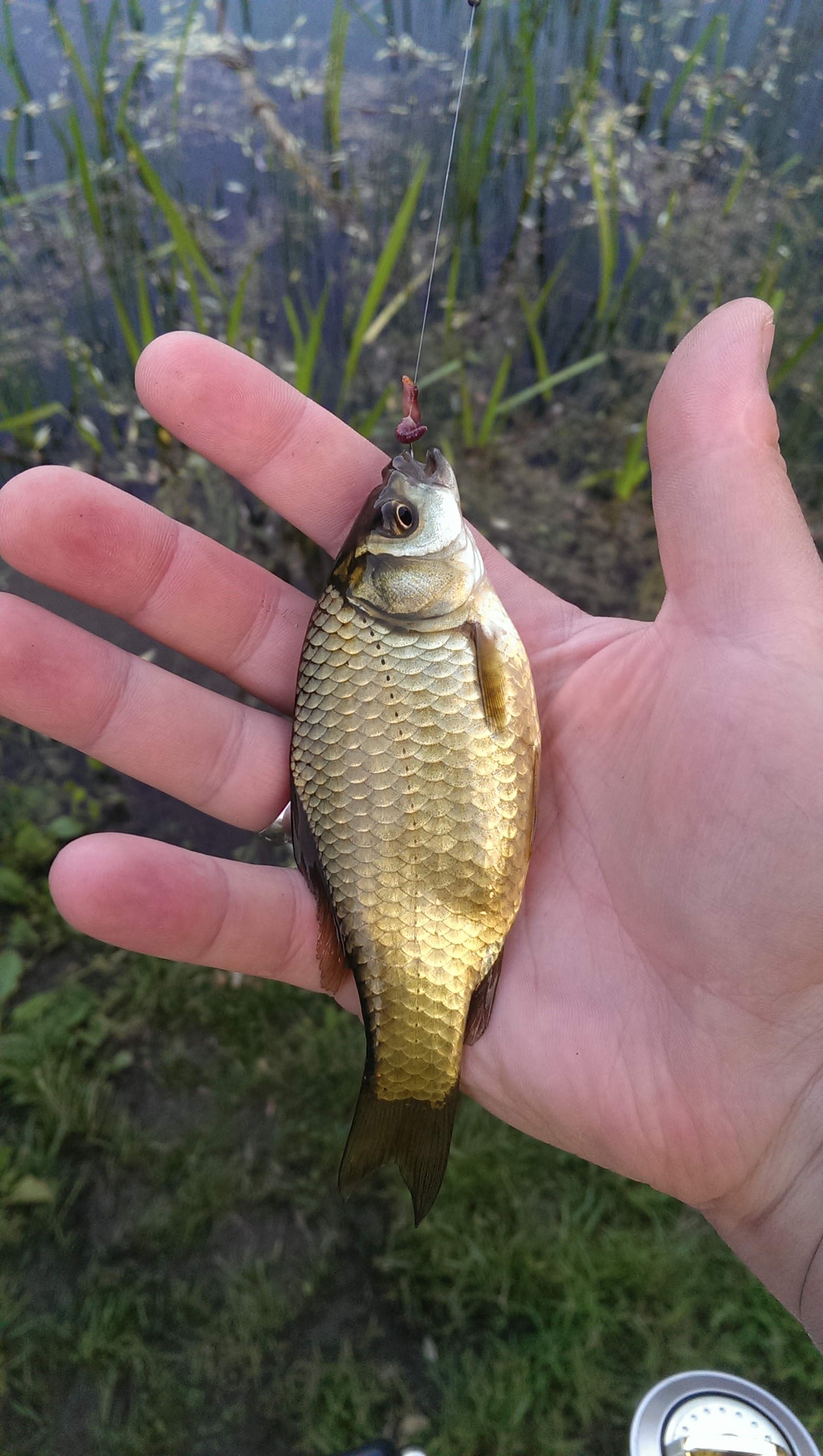 Пошёл на рыбалку в 3 ночи, сварил перловки на тест. Дул сильный ветер и на моём любимом месте были волны. В поисках тихих мест пошёл дальше по озеру. Перепробовал кучу мест но везде ветер шатал моё перо. Дальше озеро превратилось в 2м протоку. В конце ещё 3 более менее широких куска отрезанных друг от друга. И вот на последнем, в полметра от берега на глубине в 30см поймал долгожданного карасика. И в общем за 2 часа поймал 17 штук. Самый жирный 300 грамм. Всего на 4 кг вышло. Ловил на старого доброго американского червя не пучком, не кормил, перловку так и не затестил. На обратном пути ещё и маслят на 2кг насобирал. Как всегда оборвал леску о кусты. Чуть не поймал ужа, точнее сренькнул немного и только потом доперло что в руках сачок. Вобщем рыбалка удалась.
