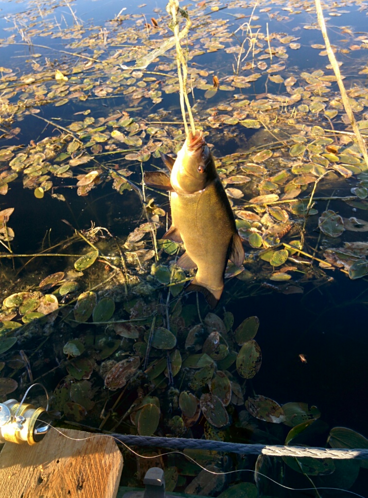 За бассом на Кипр? Пфф.. Вырастали бы ротаны под килошник, вот это интересно было бы. Этот всего то 150гр, но сопротивлялся, как упитанный карась. Сегодня карась клевал вяло. Грешу на восточный ветер. Оторвал два крючка на 0.08 поводке при подсечках . Всё-таки слишком это нежности для карася, хотя и удочка слишком жесткая.