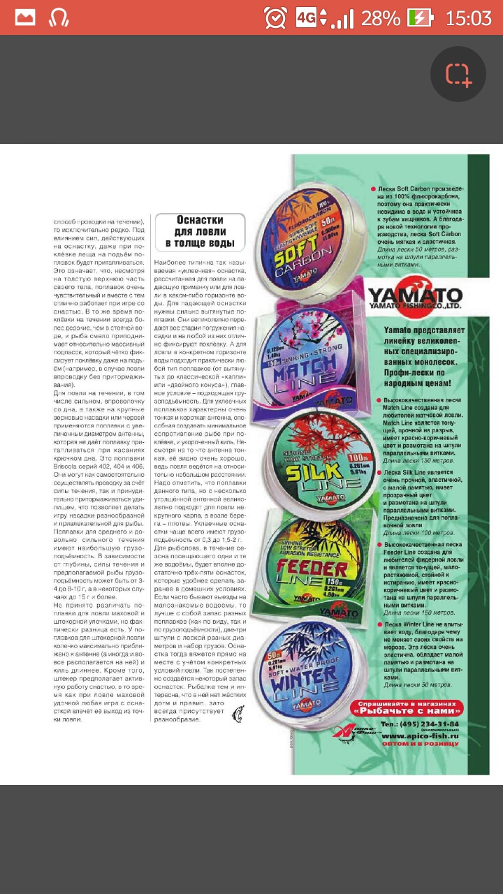 >>8658 >это был китайский телескоп из говна и палок Ну да, китайский, а тебе с этого печет? Попробую пояснить ещё раз. Мах мне по душе своей простотой. Палка, оснасточки на мотовилах и немного скарба. Забросы на большие расстояния, катушки и т.д не для меня, у меня для этого фидер есть и дохуя фидерного барахла. Мне хочется простоты и удобства. Единственный момент, который смутил в махе, это избыток лески. При наличии катушки эту леску легко подмотать. Вес меня не смущает, т.к это не будет основным видом ловли, а вот про строй и тест маховых удилищ я бы послушал ценных советов. Я вот палку себе дешевую выбираю, пока смотрю на Волжанку рапира, какие мнения будут?