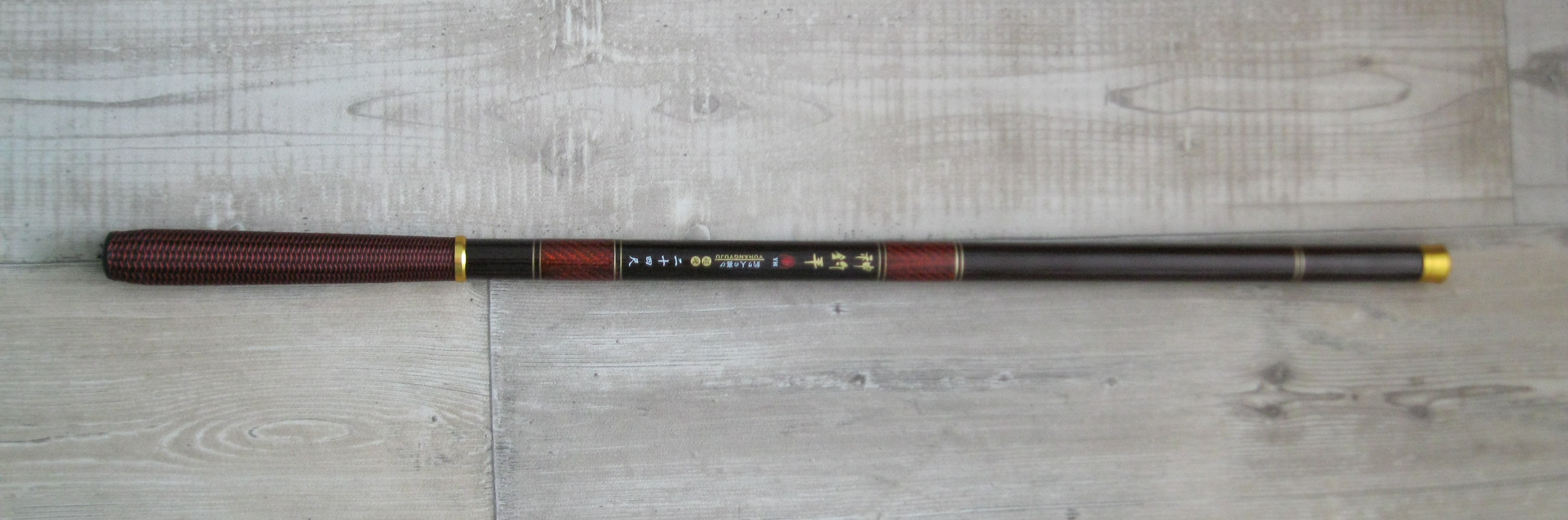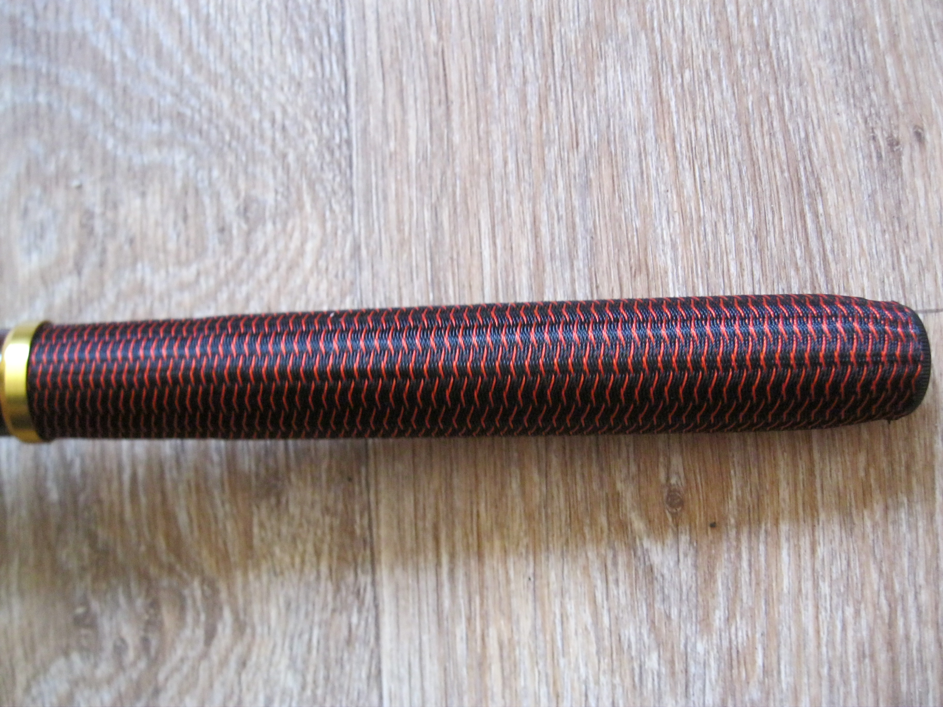 >>8620 12 колен. Реальная длина 6,90 см. В сложенном 75 см. Вес на чуханских весах составляет 282 гр. Хлыстик чуть меньше миллиметра (0,8 или 0,9). Бохатая металлическая заглушка прилагается. Ручка оплетена капроновой нитью, сверху тоже металлическое кольцо.