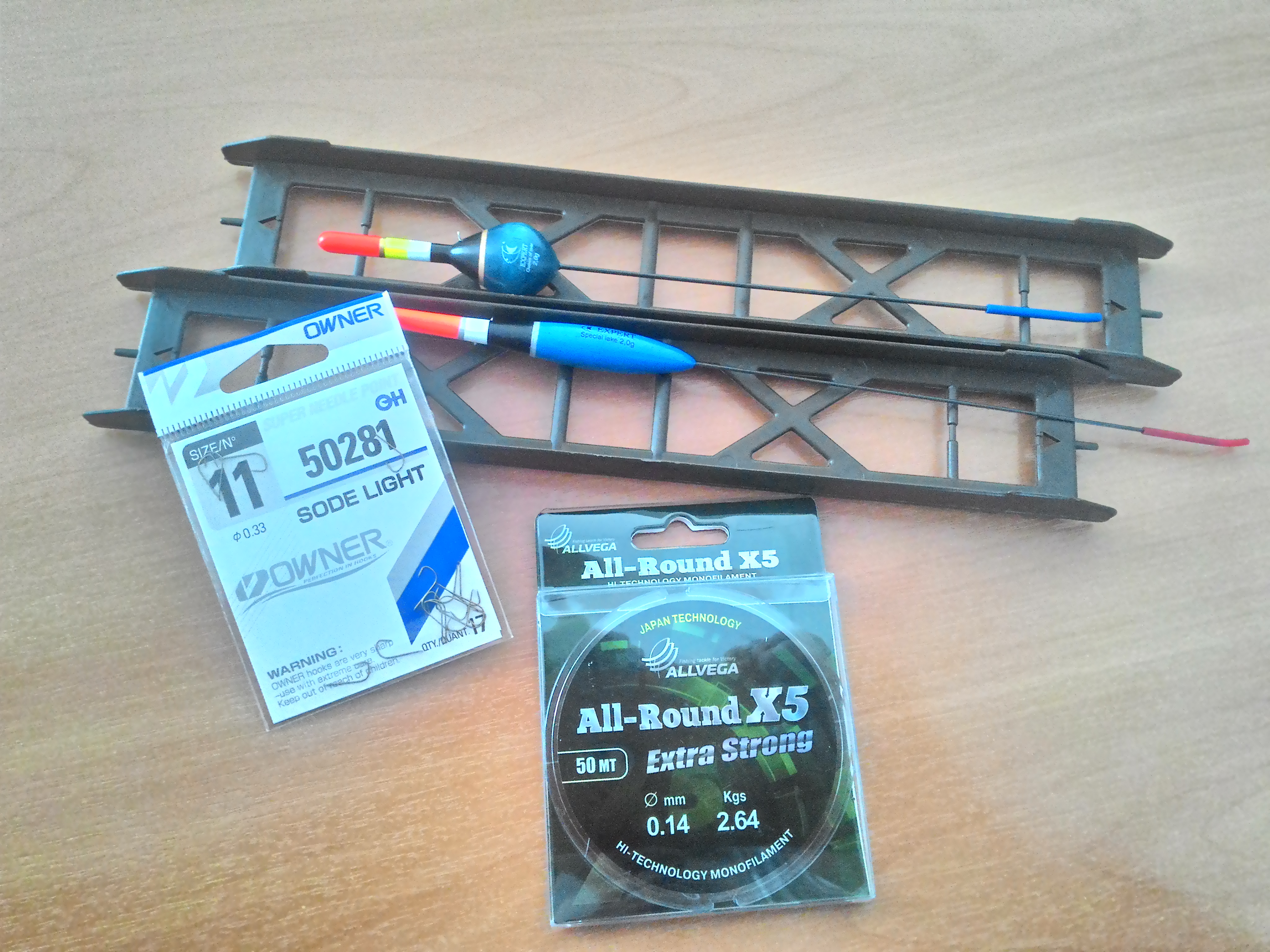 Леска - овнер брод 0.12 на основу, 0,10 на поводки Поплавок - грузоподъемностью 1, 2 и 3 грамма с тонкой антенной без бубочки Крючки овнер 14, 16, 18 - на червя, опарыша и мотыля соответсвенно.