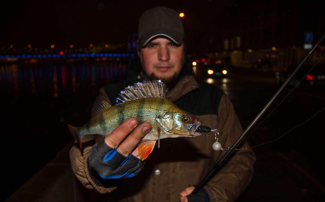 Короче, вчера вечером поехал джиговать на москва-реку. Взял кастинговый комплект и немного резины. Ловил на аваруну 3.5" с двойником и грузом 24г. Сначала напарник поймал окуня на похожую приманку. Затем такой же клюнул и у меня. Окунь ~150г. Затем у напарника был контакт с сомиком, который просто стянул несколько метров шнура и ушёл в коряги. Перед этим прямо под берегом у него повисло неизвестно что, ходило на хвосте, делало свечки и т.д. Так и не смогли разглядеть что это за рыба была. Либо щука, либо какой-то белый хищник. Возможно голавль. Ну и в завершение рыбалки у меня с выброса происходит оче мощная поклевка, рыба сопротивляется, давит вниз, фрикцион трещит. Я всерьёз рассчитывал на судака 2+ кг. Удивлению не было предела, когда я увидел 700г судачишку, клюновшего анусом! Хз о чем он думал в тот момент, но было забавно. Пришёл домой часов в 11, обрабатывать фоточки было уже лень. Чуть позже докину фото вторым постом. стритфишер-кун
