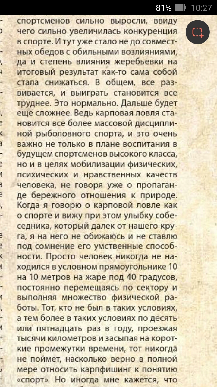 Не платник, но этот водоём когда-то был арендован, и запускали рыбу, соответственно. После что-то не срослось, и став забросили. Не знаю, возможно, когда-то платником и был, но сейчас "вход свободный". Это уже шестой за восемь поездок (два я поймал(10 кг и 5), четыре батя(6, 7, 7.5, 9) - больше одного за рыбалку ни разу не вытягивали). Изначально ловили окуня, потом совершенно случайно зацепили аппарат. И как попали на стаю, и как начали цеплять - просто пиздец-пиздец. Джиги относительно небольшие, а карп там здоровый, сука, оказался - невозможно вытянуть, постоянные сходы, леска тонкая. В следующие разы ездили уже целенаправленно на карпа, набрав больших тройников. Пробовали и на горох, и на макуху с лодок завозить - нихера. Причём леску шевелит о-го-го, но брать не хочет. Что интересно, местные не знают, видимо, что там в эту пору года можно и карася, и карпа брать, т.к. людей почти всегда нет. За рыбалку, кроме нас, максимум один человек окуньчиков на живца/силикон таскать пытается, а то и вообще никого нет. Киевская область.