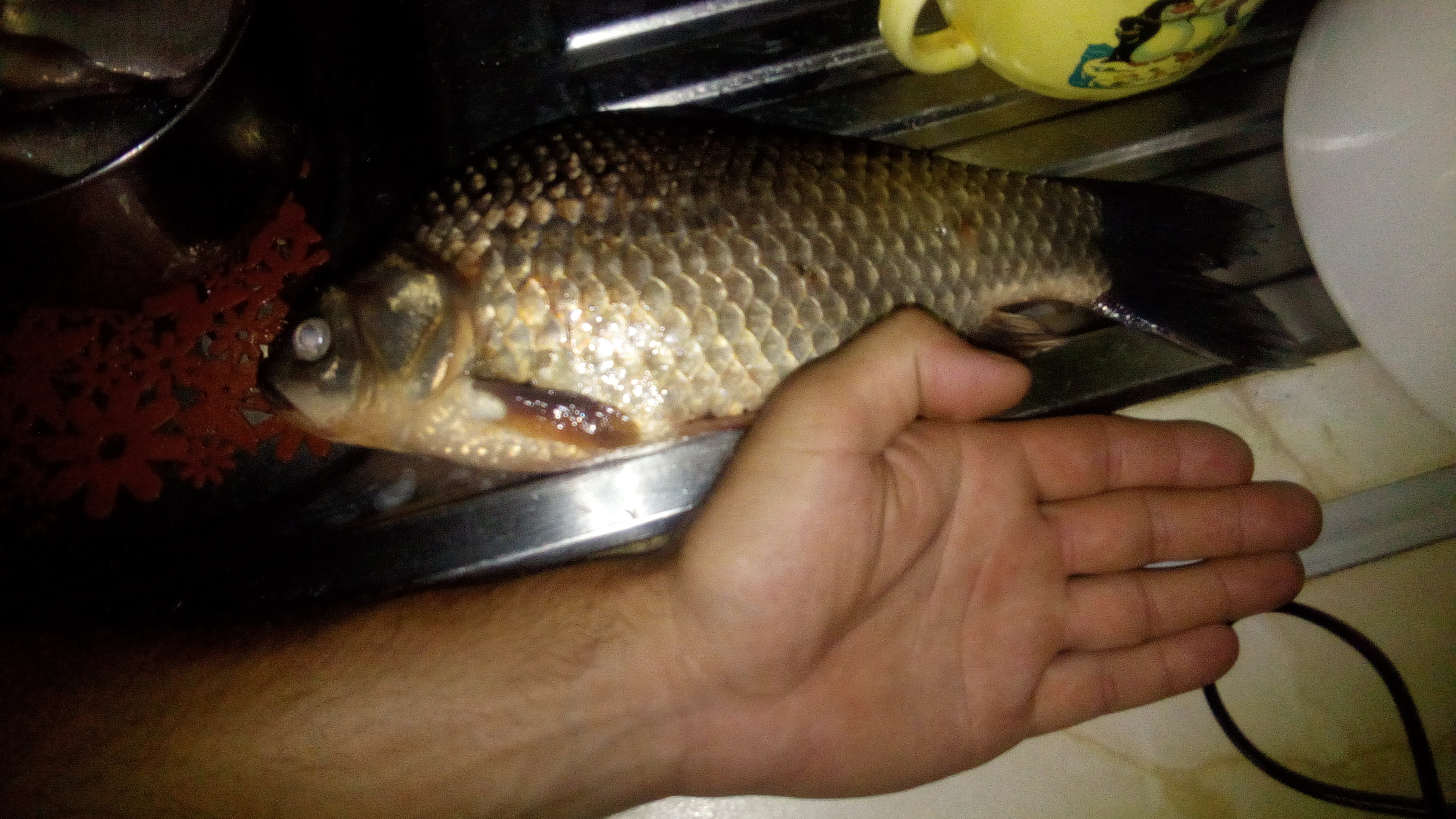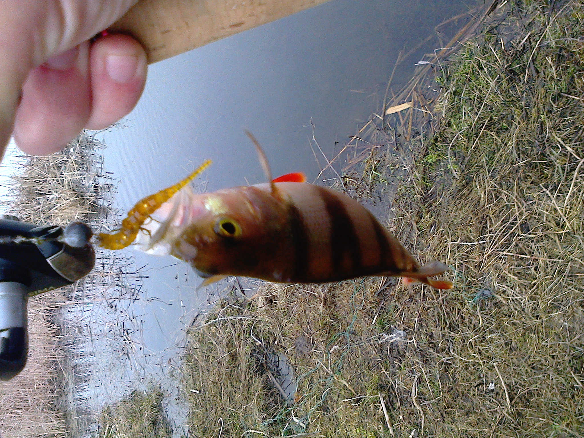 Что то не клюет, покажу вчерашний и сегодняшний трофей, вчера клюнула на нано миннов, цвет машинное масло, а сегодня на рака край фиш помоему, цвет оранжевый, все тот же неудачник-кун