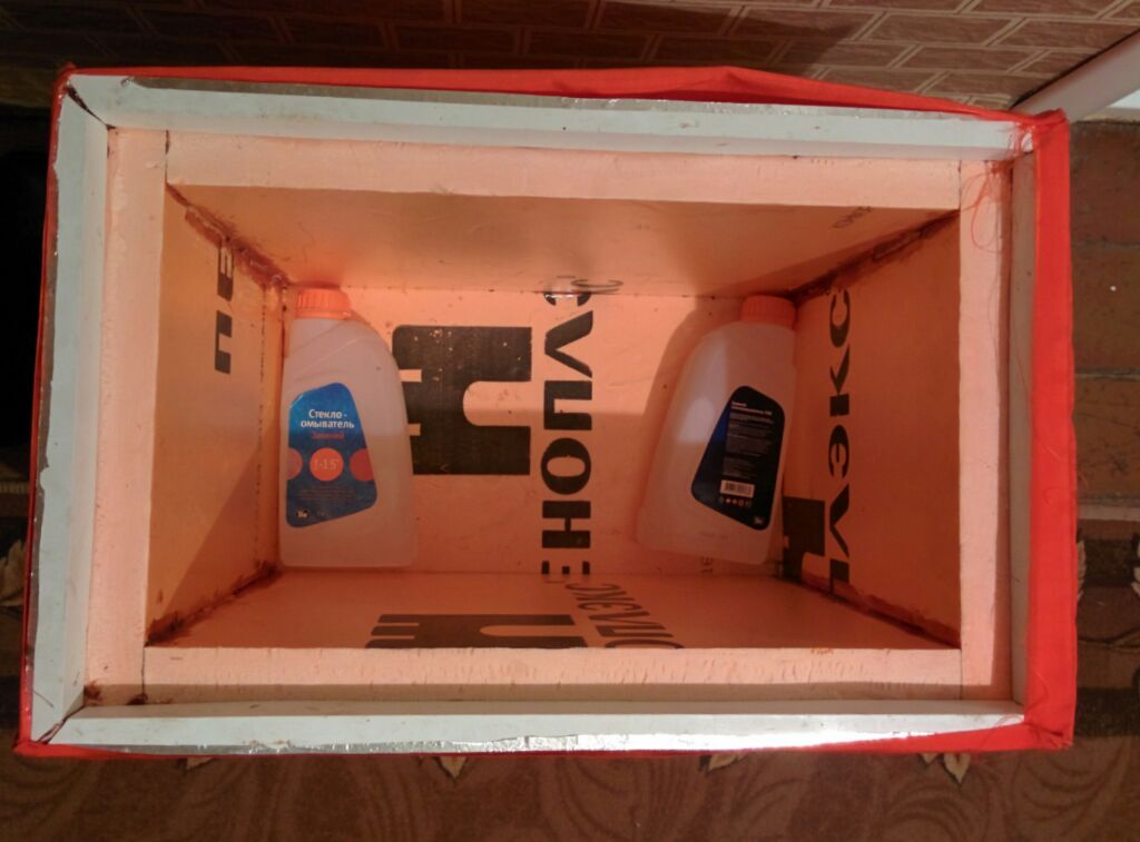 Короче, делал сам себе холодильник. Была такая необходимость. Кто-то скажет, что эта очередная поделка из говна и палок, и будет прав. Но мне так было удобно - сделать под определенный размер и объём. Сделал из пенопласта для обшивки стен толщиной 5см. Мог бы сделать и из обычного пенопласта, но он непрочный совсем, а хотелось, чтоб на этом ящике ещё и посидеть можно было. На всё ушло 2 листа пенопласта по 150р - вот и вся затрата. Остальное нашлось, как говорится, под рукой. Получился ящик - холодильник на 40 литров. После склейки пенопласта, обклеил его фольгой снаружи, т.к. считаю, что именно фольга снаружи отражает ИК излучение из вне, а холод -есть отсутствие тепла. Следовательно, в таких условиях внутри должна сохраняться постоянная температура. А вот для создания низкой температуры внутри нужны генераторы холода - небольшие ёмкости с жидкостью, предварительно охлажденные в морозилке. Это может быть обычная пластиковая бутылка с водой. В магазине обычно продаются такие генераторы холода в виде параллелепипедов, наполненных синей незамерзайкой. Я использовал две литровые бутылки от незамерзайки, правда с обычной водой, потому что теплоёмкость у воды такая же, как у незамерзайки, даже наверно выше. Также при плавлении льда расходуется дополнительная тепловая энергия, что продлевает время, за которое аккумуляторы холода нагреются до окружающей температуры. Вот и вся поделка. Боевое крещение ящика было летом. За сутки в багажнике с продуктами внутри ящик почти не нагрелся и лёд в бутылках растаял не полностью. Считаю, что чем больше толщина стенок и количество аккумуляторов холода, тем лучше будет ящик/сумка-холодильник сохранять холод.