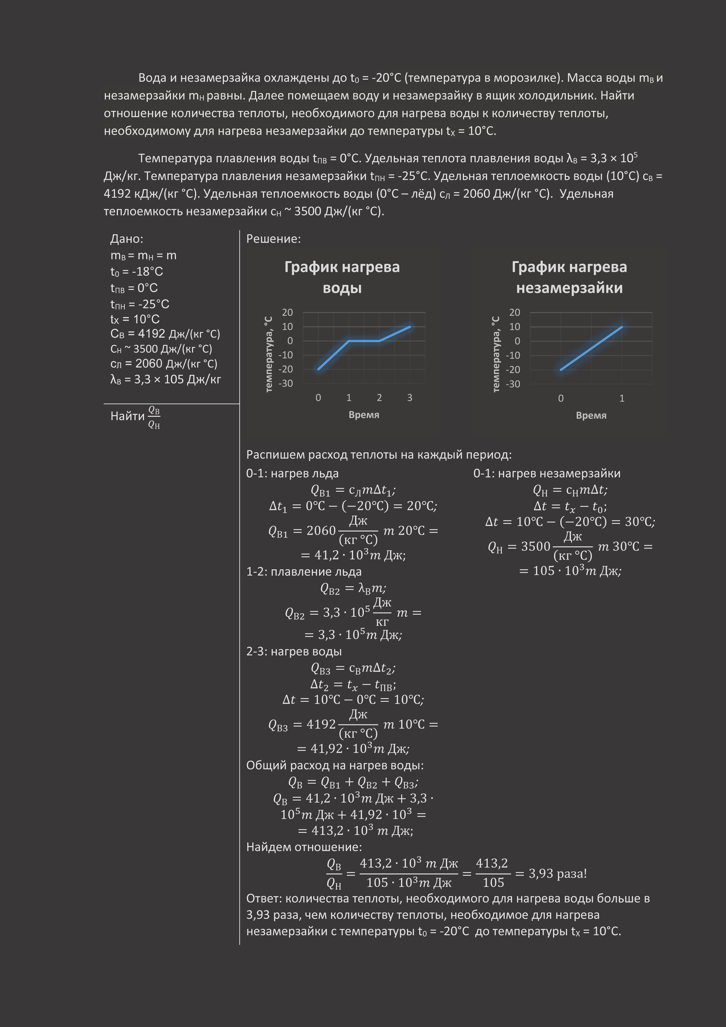 >>1088 Короче, 3 часа сидел с оформлением задачи , сучечки ненавижу формулы в офисе и разложил всё по масти. Как я и думал, вода WIN! Остальное на пикче. >>1070 >ты воду не можешь до очень низкой температуры охладить С кем приходится на борде сидеть. >>1072 >количество холода, которое этот лед может уместить в себе в 2 раза ниже Да! Зато лёд умеет в плавление и там то и оставляет всю энергию чтобы кристаллы разрушились.