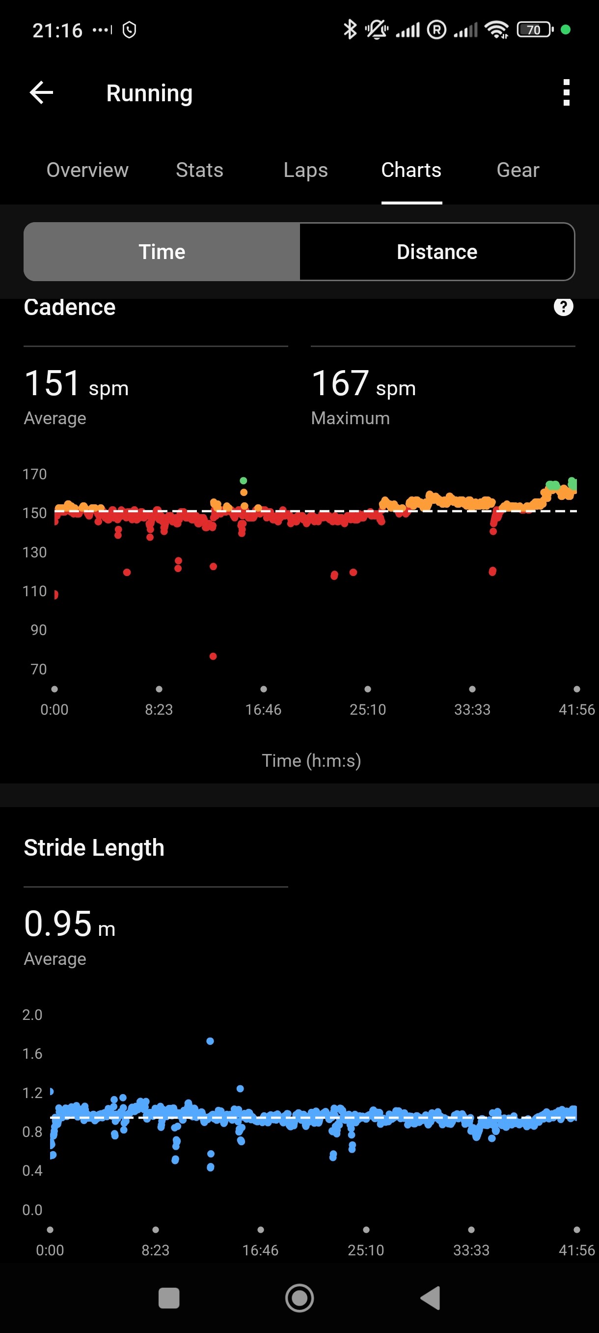 >>2651927 Не переживай сильно, вот это >>2651626 вчерашняя пробежка, а тут пикрил апрельская, третья или четвертая с начала сезона. С каденсом 145 было легко бежать, 150 приходилось чуть напрягаться, 155-160 прям тяжело, а 180 просто физически не мог - ножки так не двигались. Теперь 165-170 бежится во второй зоне пульса, 170-175 просто легко, 180 приходится чуть напрягаться.