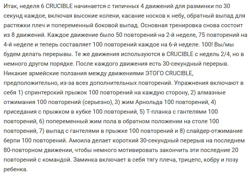 Поначалу на первой неделе второго месяца просто люто охуевал начиная со второго дня - просто не понимал как так можно и после тренировок чувствовал себя как лежащий на полу ребенок в комнате измазанной говном. Но на второй неделе стало уже сильно проще, сейчас могу сказать - конечно тренировки второго месяца тяжелее, но время пролетает сильно быстрее и морально их значительно проще делать, да и тело уже готово к таким нагрузкам - так что второй месяц у меня идет легче первого, как это ни странно. Но чувствую большую усталость на последней неделе - 7 дней подряд прозаниматься я ебал, но завтра легкий день с рекавери вик, в пятницу и сууботу нужно попотеть, а воскресенье уже итоговый фиттест.
