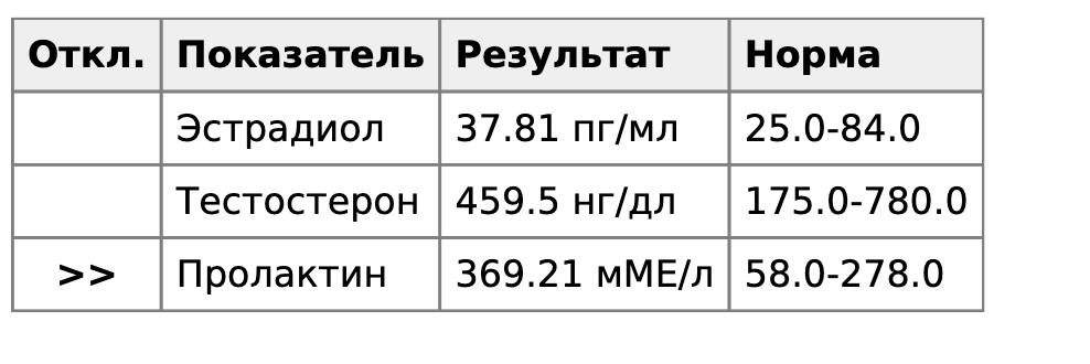 Анончики, получил результаты анализов и ОХУЕЛ 1. Никогда не курсил ничем, жрал БАДы всякие, типа трибулуса и тд Последний раз сдавал на тестостерон/пролактин анализы лет 7 назад Было 38нмоль тестостерон и пролактин 450 (чуть завышен)