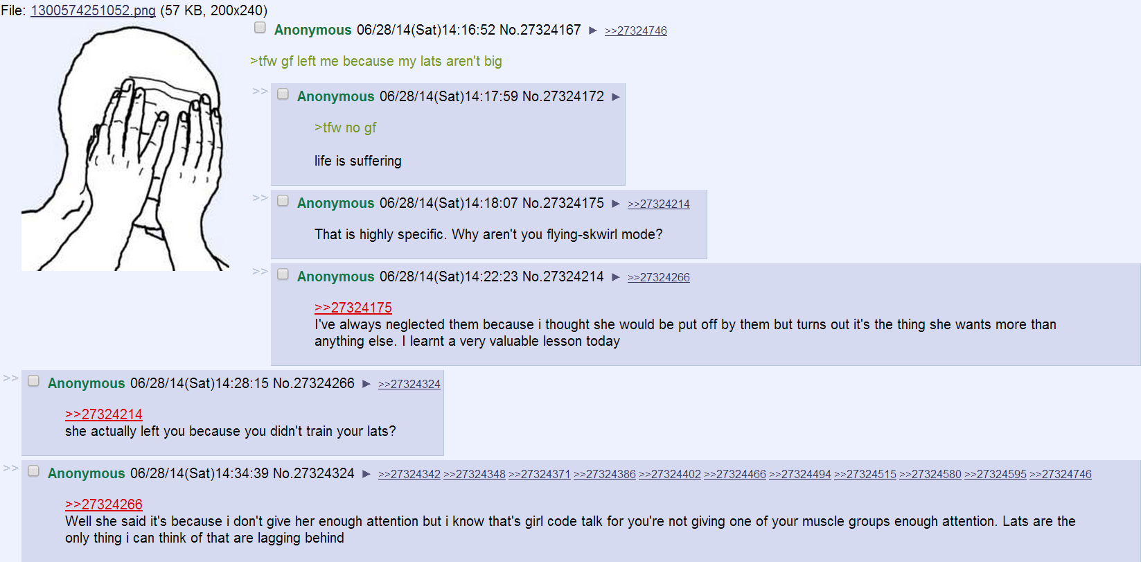 >>2636950 >Ты качался ради того, чтобы получать комплименты от мужиков?
