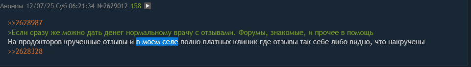 >>2628987 >Если сразу же можно дать денег нормальному врачу с отзывами. Форумы, знакомые, и прочее в помощь На продокторов крученные отзывы и в моем селе полно платных клиник где отзывы так себе либо видно, что накручены >>2628328