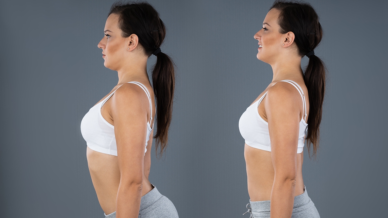 Сомневаюсь что поможет, раз спортом занимаешься, но мне исправить осанку и избавиться от подбородка помог поход в зал с базовой программой от тамышнего тренера если надо, поищу ее, но уверяю, что ее засрут, подбородок ушел, как мне кажется, не от самого занятия спортом а от того, что я при их выполнении на автомате челюсть и шею напрягал