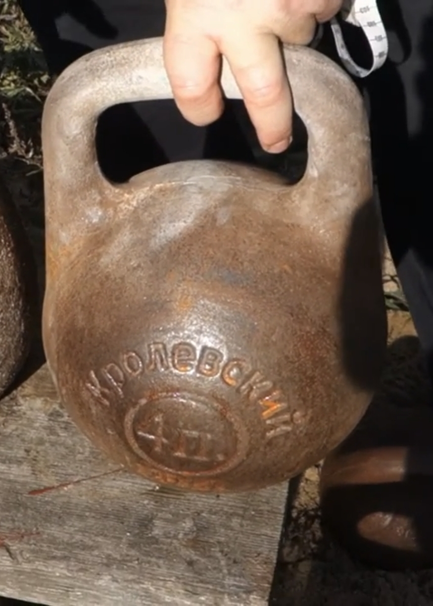 Купил значит очередную советскую гирю с Авито по вкусной цене как и собирался вчера. Я до этого думал что у меня есть гири большой шар (около 20 см в диаметре) и малый шар (около 16 см в диаметре). Но эта оказалась совсем микрошар какой то, сантиметров 13 в диаметре, совсем мелкая по сравнению с остальными. При этом на весах честные 16,2 кг. Вобщем будет у меня походной - для занятий на улице, на природе с перевозкой на велике, брать в разные поездки и т. д., зря сомневался зачем мне третья пудовка