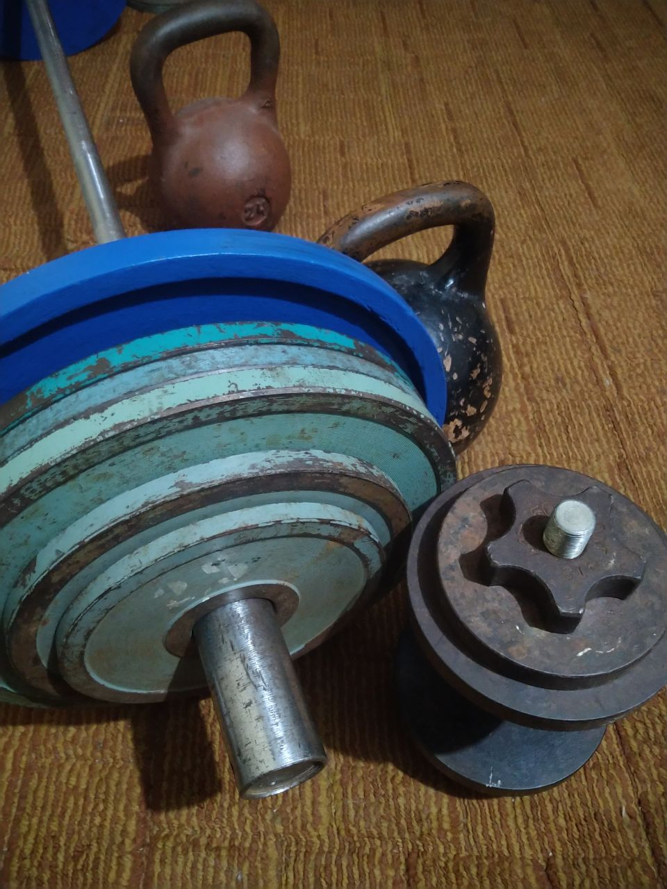 >>2670942 >когда нет денег на третий пикрил Там помоему выточить из чугунины на заказ дешевле будет чем твой пикрил. Штанга хороший вариант но во первых не тот тред, тред про гири напоминаю. Во вторых имхо для штанги больше 80кг нужен страхующий. В третьих для меня что долбить бетонны блины перфоратором что шабрить втулки одинаковое кузьмичевство. Штангу я не люблю но гири купил нормальные и гантели разборные тоже, мне нравится когда у меня железо эстетичное блестит, обрезиненное, чистое а не как подвал где крысы бегают, ржавчина и плесень с пылью по углам. Гири я покрасил и намотал рулевую намотку для велосипеда для удобства на ручку, хорошо.