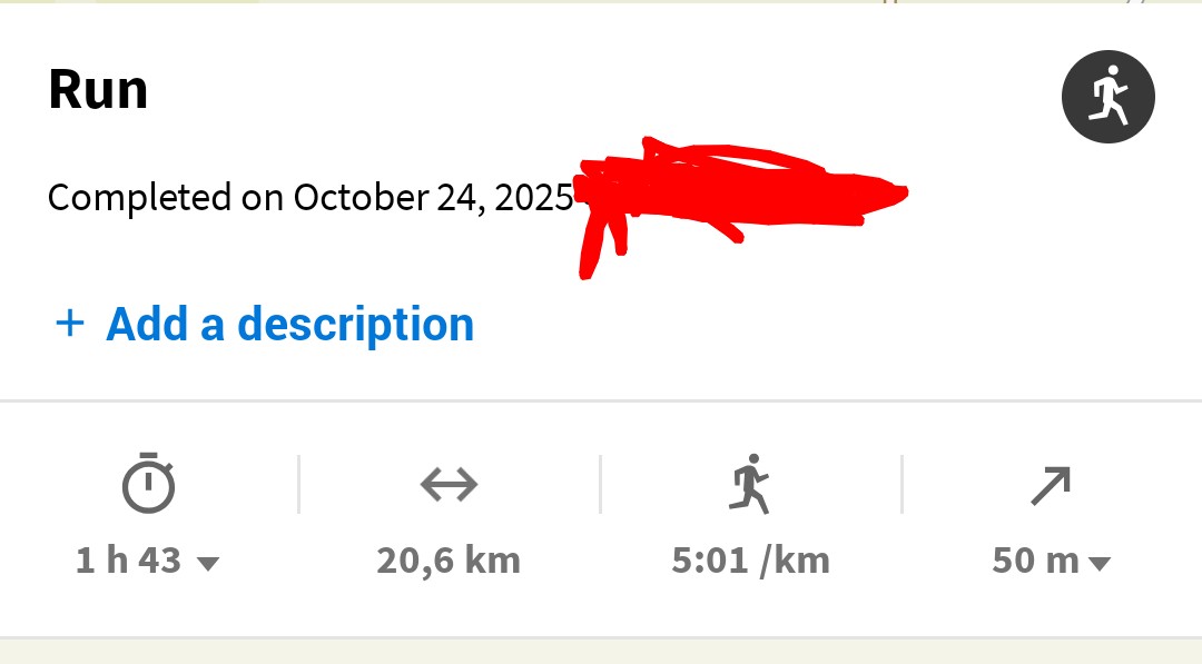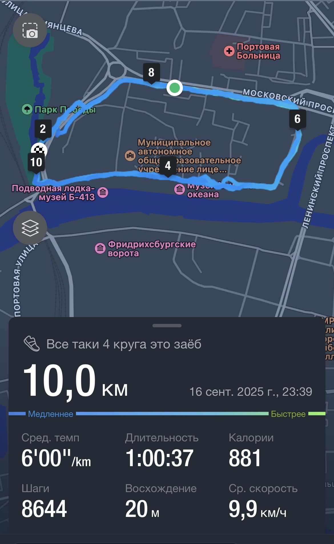 Ну пробежался сегодня один круг и он ощущался почему-то мучительно. Если прошлую практически такую же пробежку сравнение на пик 3 я бежал легко, то сегодня ноги словно ватные и супер тяжёлые и дышать невозможно -- без буффа холодно, с буффом дыхание будто стесненное, ещё и ветер замедляющий хоть когда сбоку, хоть когда в ебало. Почему при одинаковых результатах такое разное восприятие пробежки я хз, может из-за погоды.