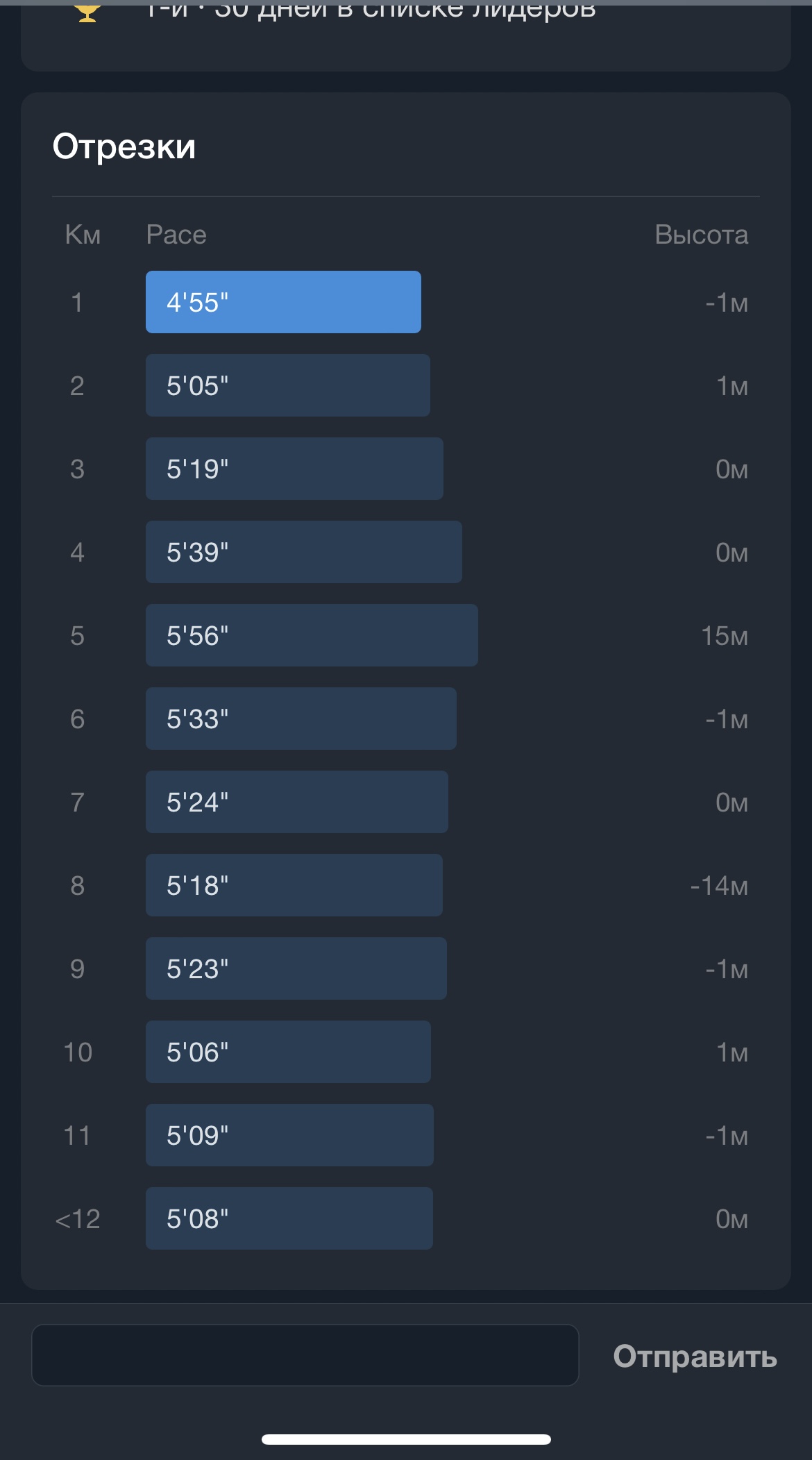 >>2671858 >Но теперь точно завтра не побегу, надо мышцам ног восстановиться. Не сдержался, побежал. Решил один круг всего бежать, но в как можно более быстром темпе по ощущениям вообще быстро нессся, а по цифрам что-то медленно получается -- литералли такое же время, как всегда