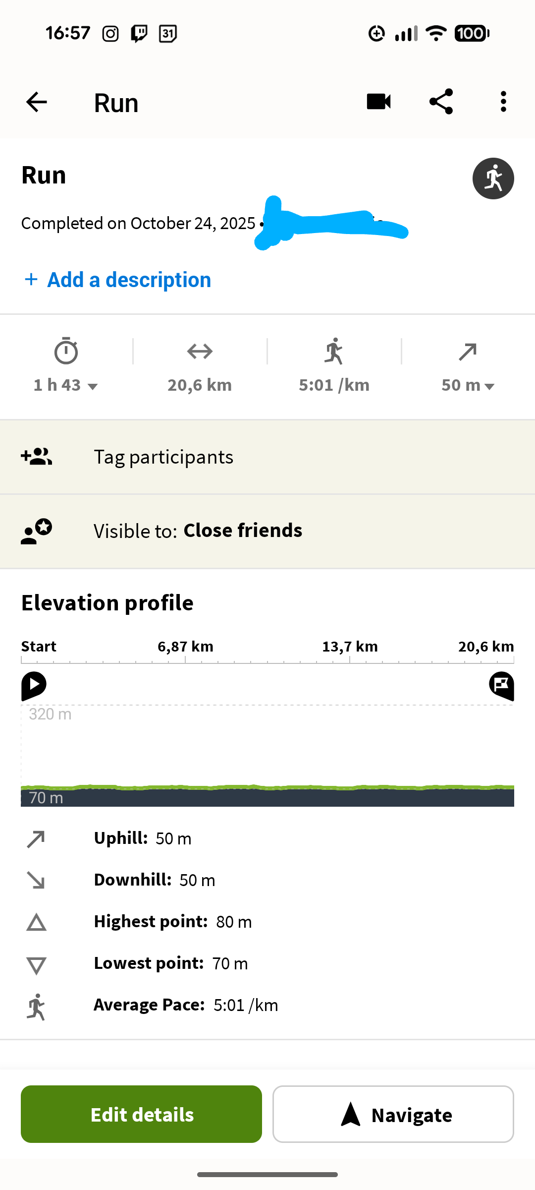 Конечно разница между бегом на стадионе по резине и по говнам по полю за городом заметная, ноги заметно устали от того что постоянно нужно ловить землю под разным углом. На стадионе 2х от этой дистанции выбегается проще и ноги потом не ноют, видимо индикатор того что у меня ноги в не настолько окей состоянии как думал.