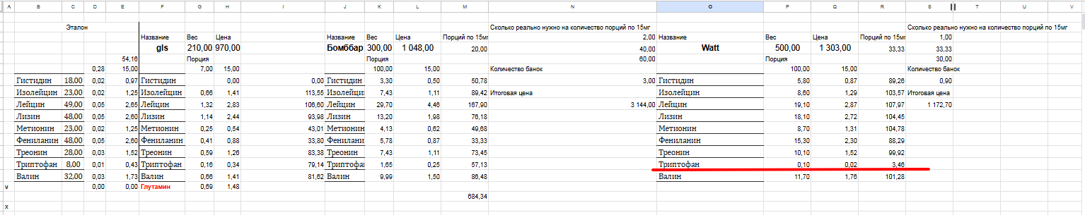 Изучаю составы EAA пока-что три первых производителя на озоне пытаются наебать. Есть коротко то наваливают лейцина, а остальное оставляют на усмотрение ашота который его в подвале сортирует. Пока к эталону (из исследования о суточной норме) приблизился watt но там например всего 0,02гр триптофана на 100гр продукта. Тоесть одну кислоту тупо недоложили. У бомббар вроде все норм, но нужно купить всего три банки в месяц чтобы получать 15гр кислот. gls вообще хуй пойми как насыпали и забыли гистидин.