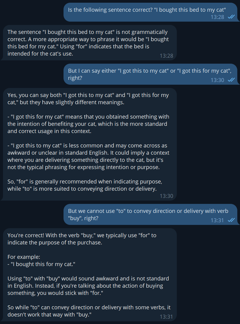 >>716885 >очевидно тяжело чет как-то. чувак, не работает бай с предлогом ту в английском. это бессмыслица. аи говорит тоже самое. это буквально "купить в кота".