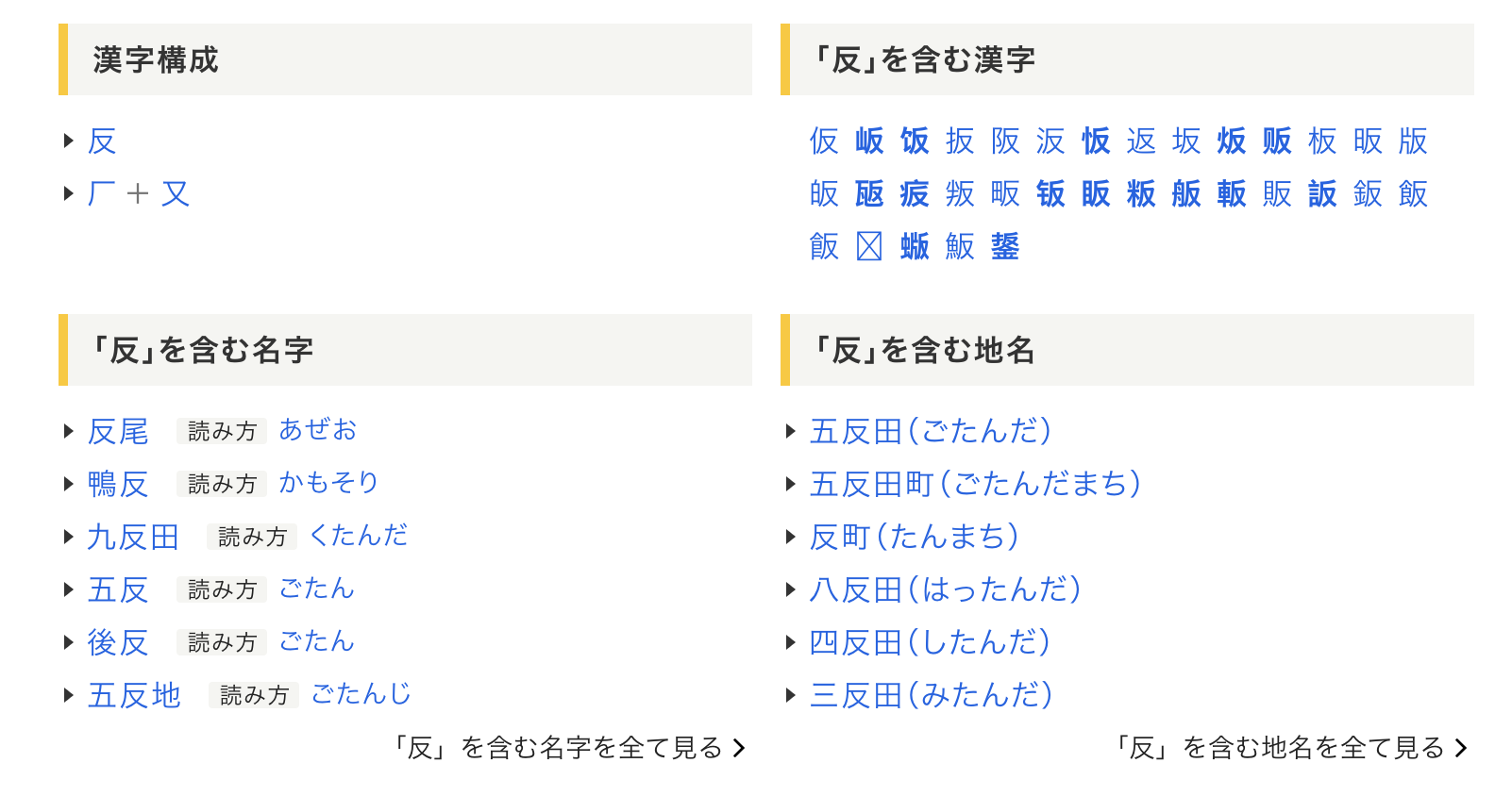 >>714680 Это смешная шутка. На самом деле, про КУНов ты почти угадал. Только я сами чтения не мнемоню, я довольно неплохо уже знаю слова, и мне нетрудно запомнить, что 反 это пикрил. От словаря к словарю значения разнятся, впрочем. Проблема только запомнить, что они там - есть. Поэтому "кун" в мнемонике выражает только "качественное" значение, соответственно менее персонализированное, то есть "кунов" у меня всего 5, думаю, не надо объяснять почему не больше. Я не буду раскрывать подробности, там стыдненькое.(〃ノωノ)