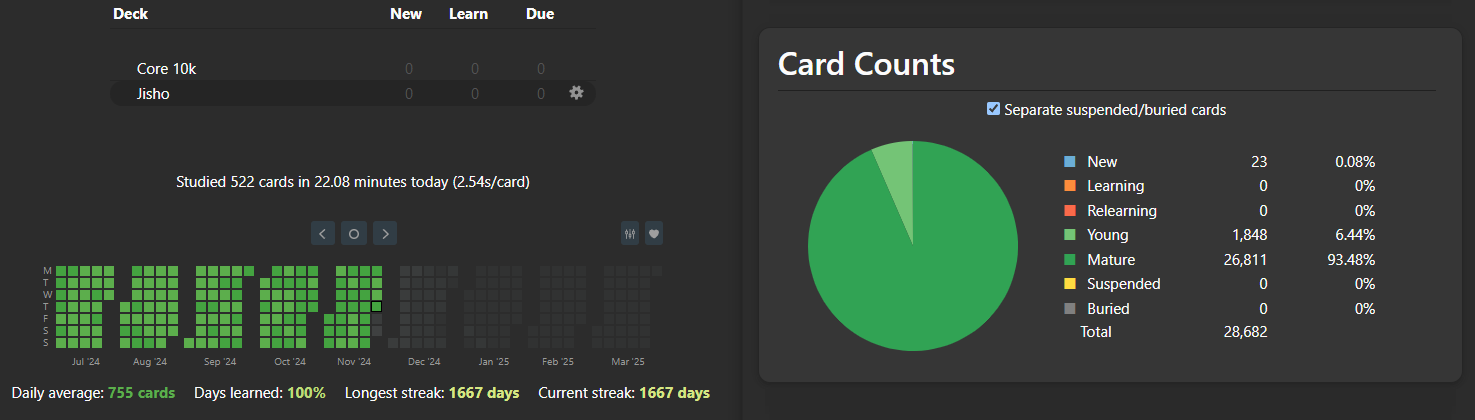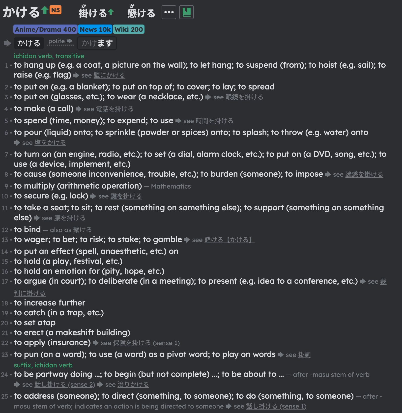 2. Любимый контент +google +анки (опцион) +Rikai/Nazeka/Yomichan(опцион) Использовать анки + готовую колоду (вариант, в общем-то, один https://ankiweb.net/shared/info/3173403321 ), можно начать сразу после заучивания хиракатакан. Только не стоит пытаться за раз учить по 100500 карт. В начале может показаться, что это легко. В колоде имеется некоторое количество опечаток, например, とがみ вместо てがみ.