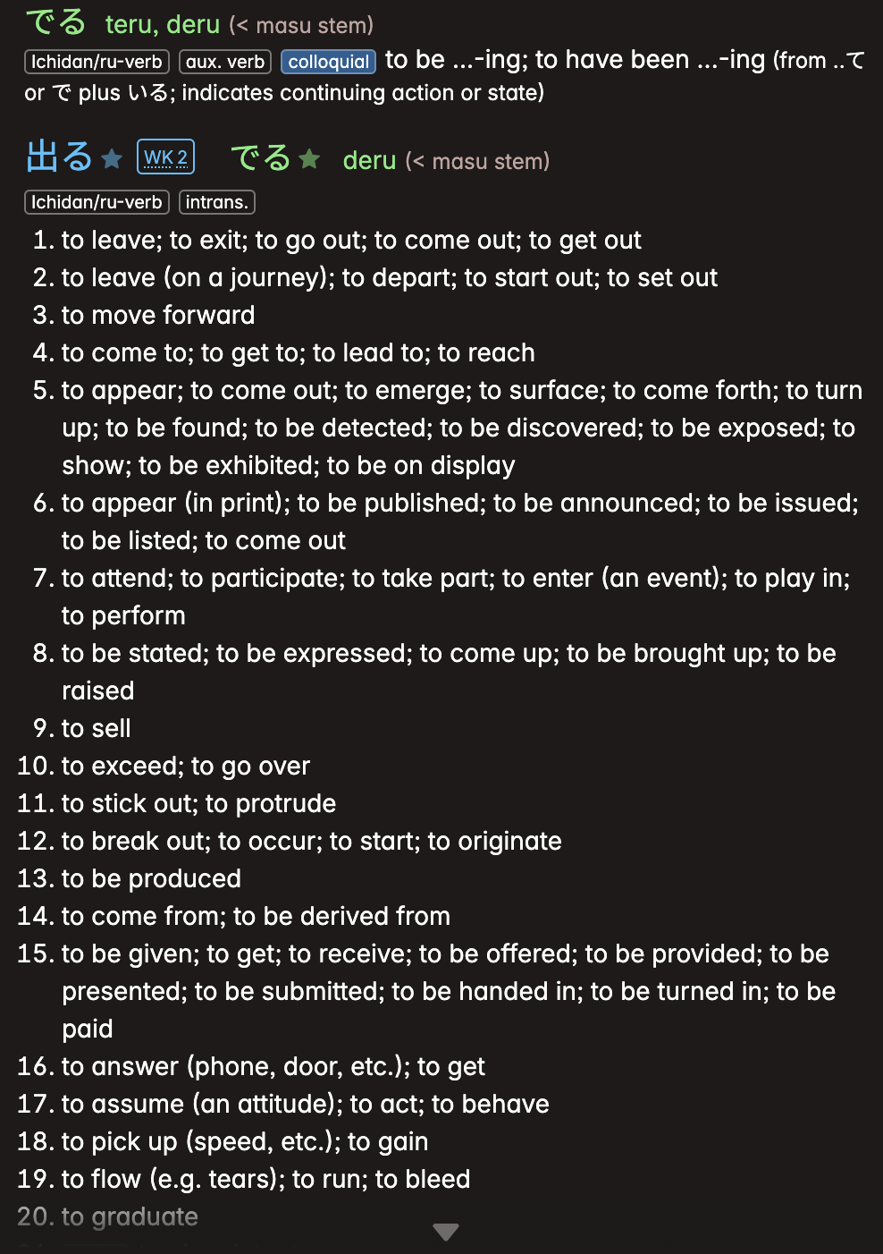 >>714908 Так то все верно, уже выучил весь школьный курс кандзей и значительно сверх него по большей части превентивно, так что теперь только доучивать на него слова. Раз уж я в яркси учил, удобнее там и слова смотреть. Это уже минимум ресурса требует, просто запомнить комбинации из знакомых чтений. Примеры использования смотрю в онлайн словарях конечно. Сейчас уже читаю потихоньку. Конечно это удобнее, когда не нужно каждое второе базовое слово гуглить, и тем более ещё кандзи к ним запоминать.