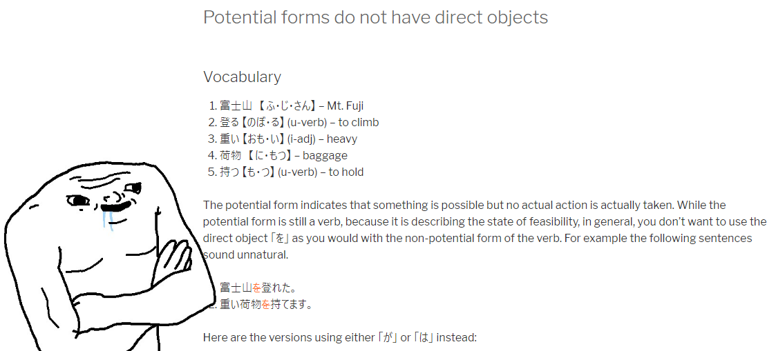 >>716311 Он использует термин "падеж" применителньо к японскому предложению, а не к русскому. Многие источники называют частицу が именительным падежом, так что это не его личная выдумка.