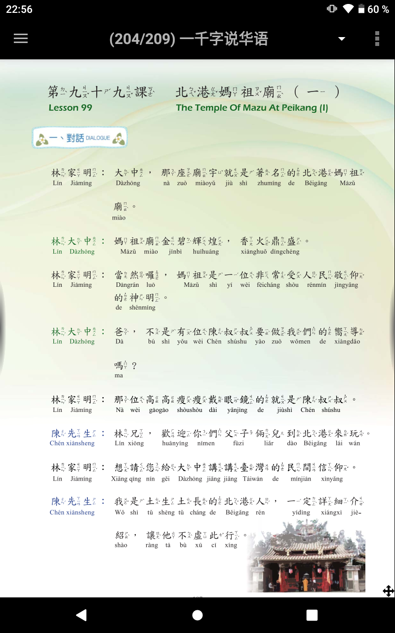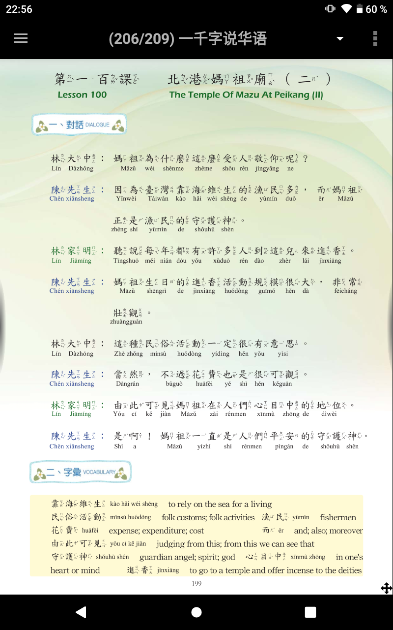 >>715108 Частично не согласен, пиздатый материал существует, и читать его лучше чем стандартный курс hsk Конкретно этот 一千字说华语 просто бесценен, там куча диалогов нацеленых на разные жизненные ситуации, есть тексты про традиционные праздники, муз инструменты, китайский театр, поход в больницу, съем квартиры, в аэропорту. Чём отдельно выискивать это в инете лучше иметь один мануал, жаль что он скоро закончиться а продолжение для более высоких уровней они не делали.