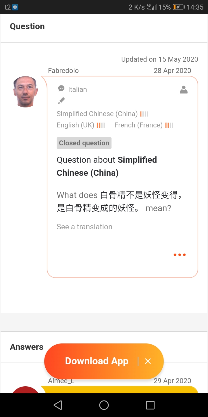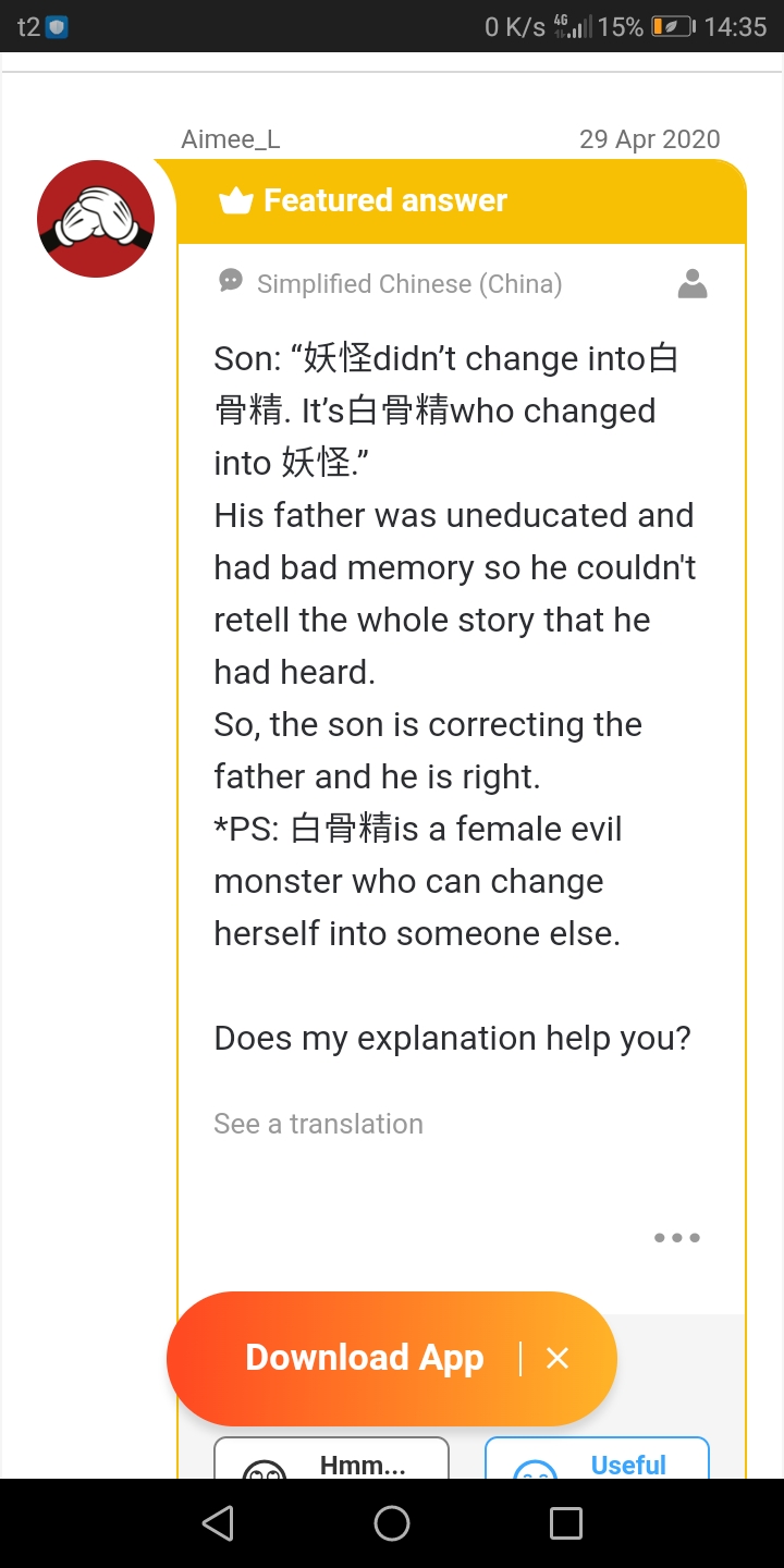 Когда его спросили кто такой Байгуцзин он сказал "ну это тот, в которого демон превратился". А его сын поправлял: Это не демон превратился в Байгуцзина, а Байгуцзин в демона.