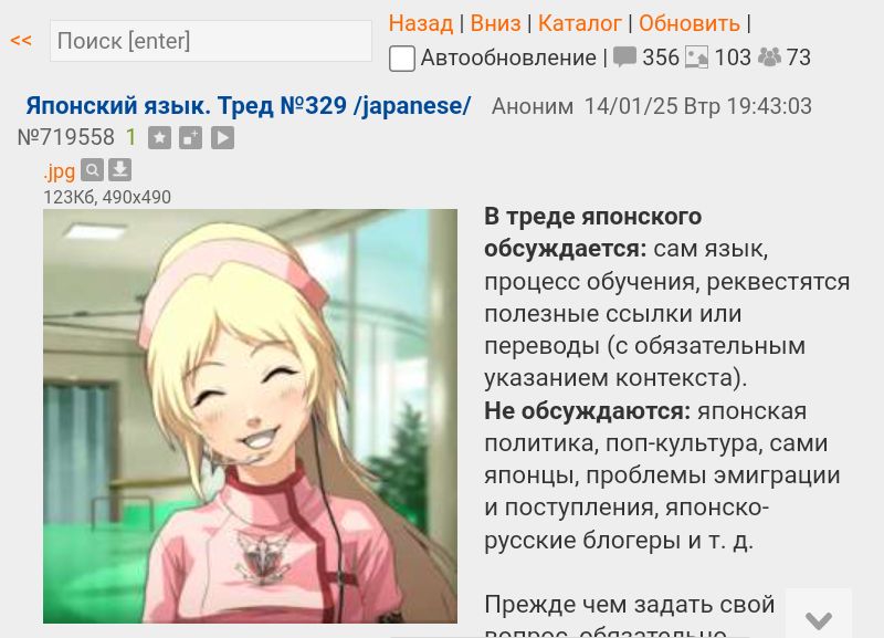>>720563 >увлекался полжизни Японией и т.д., >в итоге выучил японский язык >свободно говорю на нем на бытовом уровне >знаю около 500 иероглифов Что тут написано? мимо учил японский >не особо прям горю китайской культурой Почитай вот что нибудь из прикл2, без интереса ты долго не протянешь, а так если интерес появится то и обучение легко пойдет >>720567 >A2 от силы это не "выучил язык". Ах ты шельмец! Опередил меня! Я сам хотел его полить элексиром бессмертия.