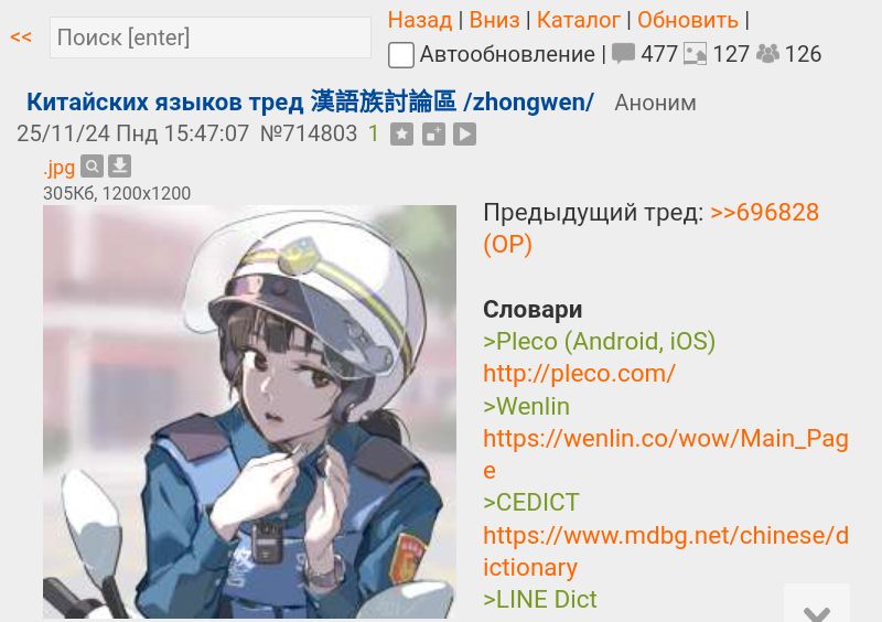 >>715083 >Sinolingua, Mandarin Companion, Китайский Бриз А я такие качал, их немного больно читать, там длинные тексты, написанные одними и теми же словами для хск, помойму в последний раз читал про бибизьянью лапку. Я вообще другое имел ввиду, какой-нибудь базовый курс именно, типа учебника, но более ориентированного на реальные ситуации с кучей культурной и повседневной лексики, вот тот прикл реально огонь. Там есть урок про жрачку. Помню когда ездил в Китай немного выпал в осадок с меню, там дохуя разных названий было и мало что понимал, поэтому на завтрак всегда покупал что то что содержало в себе слова типа 包子,鸡,牛 Там например ещё было 排骨 а я в душе не ебал что это, поэтому не брал. Хочу найти норм учебник который как раз закрывает пробелы такого рода, в более менее короткие сроки. Те тексты которые ты советуешь немного длинноваты и однообразны для этого будут. не ну я их всеравно когда нибудь прочитаю >Там правда не твоя понадусеровая дореволюционная орфография, а одобренная партией. Лал изначально реформу хотел провести гуоминдан, а не комуняки. Я и такие и такие читаю, но чисто эстетически мне больше нравится традиционное письмо. >Тоже учу китайский через чтение, слушание и анки. Когда-нибудь обязательно выучу. Правильное решение, через чтение лучше усваивается чем дрочкой списков слов, сейчас читаю 猫城记 уже где то на 60 стр. Ещё по дороге разбавил китайскими легендами. >Китайский бриз можно кстати неиронично на вб\озоне заказать, я себе взял. Можешь в ВК ещё поискать, там куча их