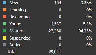 >>721774 В анки есть аддон Kanji Grid, который считает кандзи в колоде. К сожалению, не может считать сразу в нескольких, поэтому мне пришлось свой скрипт писать.