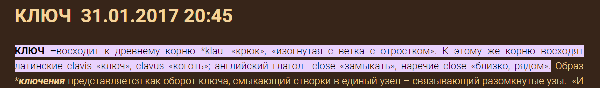 >Ну подтяни значение "ключ" - как "родника" Не понимаю причём тут это. Я не утверждаю что родник называется ключом согласно тому принципу, тут просто совпадение. Но если настаиваешь - легко: родник даёт мне доступ к воде.