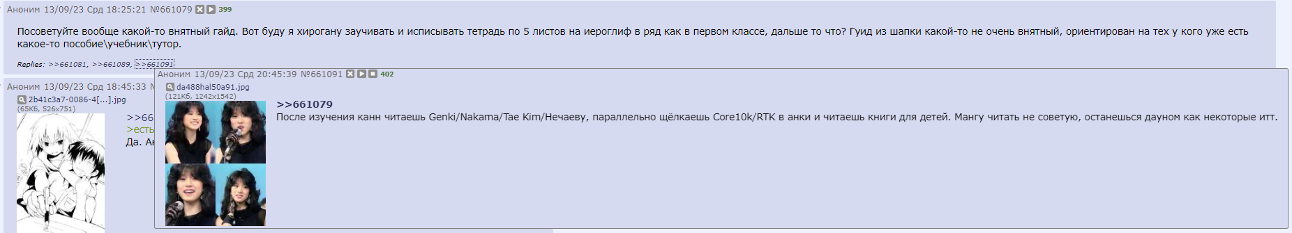 > Манга это картинки, как смотреть мультик, не язык, а книга это текст, язык, противоположные вещи. > Считать, что читая мангу ты читаешь книгу получая профит изучения языка (от книги) так же глупо как взять книгу, вырезать в страницах дырку, вставить туда телефон и смотреть ютуб воображая что ты читаешь и этим учишь язык. Да, со стороны выглядит будто ты смотришь в книгу, читаешь, но это лишь внешняя видимость. Ты смотришь картинки, видосы, и хоть всю жизнь смотри, никакому языку не выучишься, потому что картинки это не язык. Манга не книги. Бред, шиза.