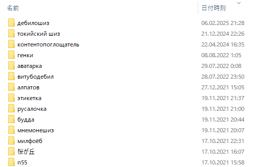 >>723896 > А почему ты не объединяешь перечисленных в одну папку, ведь это очевидно один челик? Эти папки скорее по темам, а не по человекам. Ну, разные папки по-разному. Алсо n55 не один чел постил, а как минимум 2. Милфоёб у оригинала подхватил некоторые словечки, но ту страшную стримершу вроде не постил.