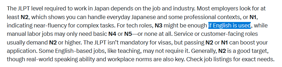 Энивей, если твоя работа это не мести полы, то я хз как можно нормально выезжать с лишь н3. Узким местом скорее всего будет маленький словарный запас.