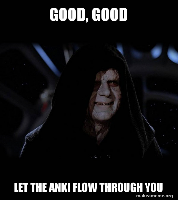 >>725025 Без анки менее эффективно, попросту глупо, поэтому учить = анки. Но человек не эффективная машина, бывают варианты, например совсем не учить, или наоборот быть машиной.