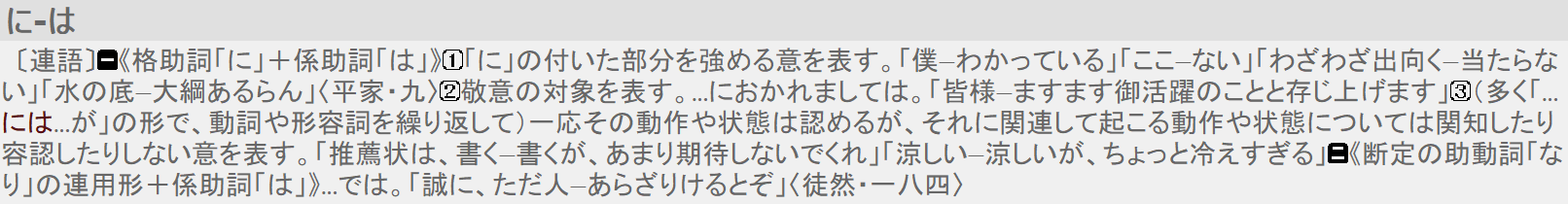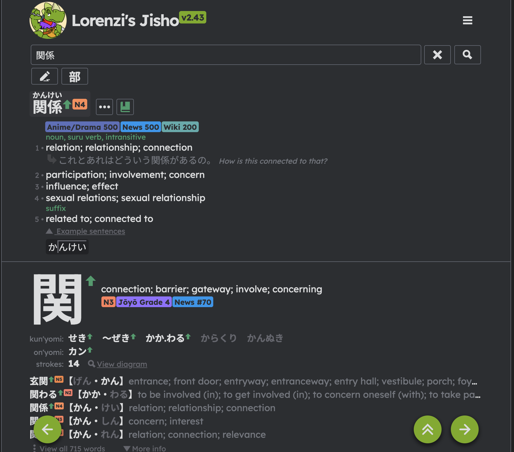 >>724806 Ну давай начнем с того, что оригинальный джишо устарел лет пять назад. Для быстрых чеков пользуйся jisho.hlorenzi.com . А для более вдумчивых JPDB