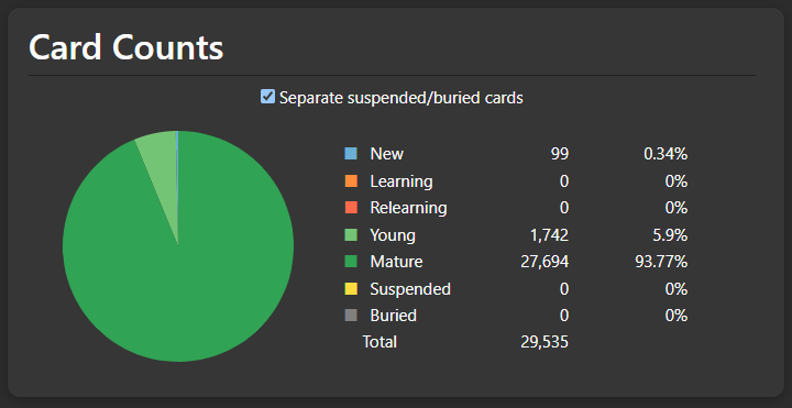 добил RTK 2200, ушло 32 дня под конец делал вынужденный перерыв на неделю и не добавлял новые, так что можно было и за 26-28 справиться время на скрине стоит умножать на два, так как анки уходит в афк, пока пишешь в тетради исписал почти 4 шариковых ручки и две с половиной тетради по 48 листов, о калиграфии и размере совсем не заботился - только порядок штрихов и их узнаваемость завтра вечерок попрописываю катакану и наконец-то продолжу учить язык, хоть пока что повторов и дохуя будет