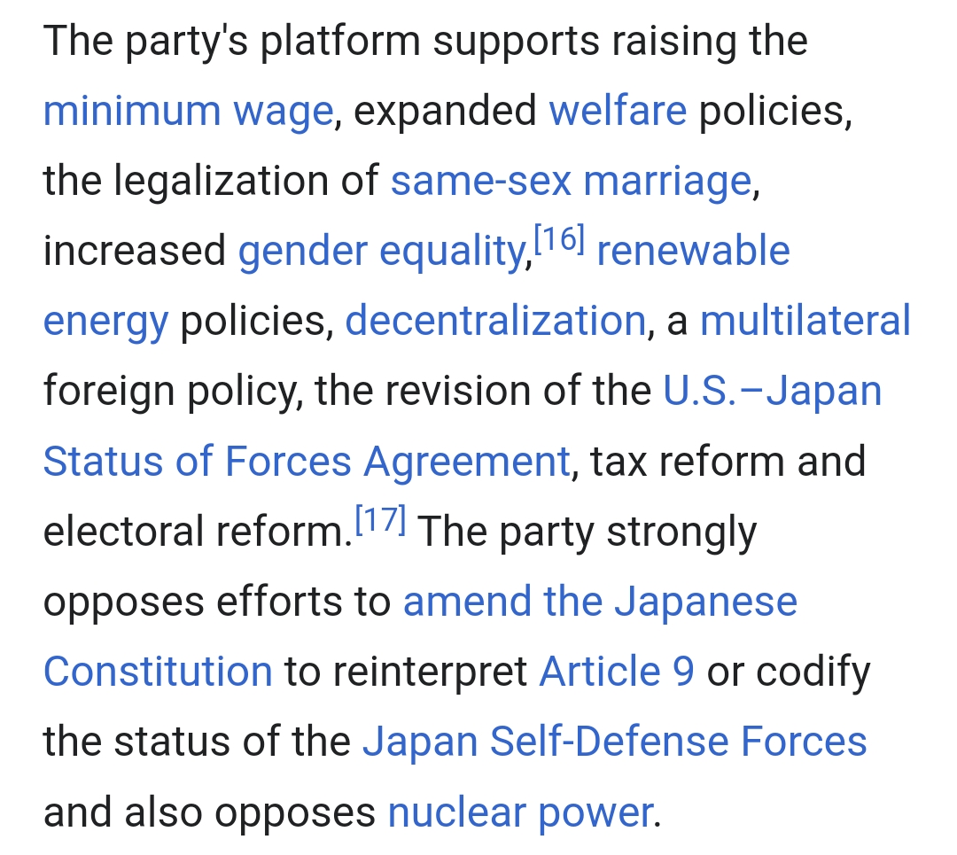 >>725114 >centre-left party in Japan >expanded welfare policies, the legalization of same-sex marriage, increased gender equality Не получилось в тот раз – не получится и в этот.