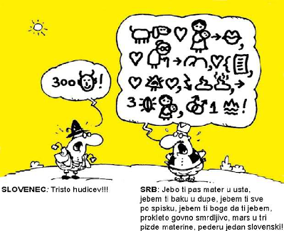 >>298960 Ога. Фраза, специально сконструированная с целью быть непонятной даже самим словенцам, в ответ на реквест "Dejmo v tej temi pisat cim bolj v narecju in slengu. Koliko poznate narecja?" По-русски тоже можно такую фразу составить, которую даже не всякий носитель русского поймёт.